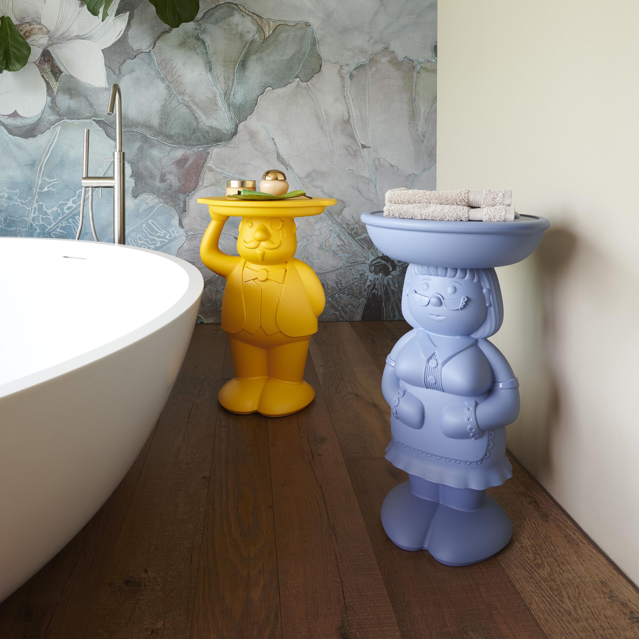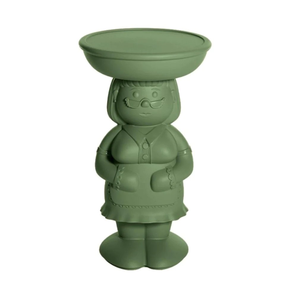 Amanda es una mesa auxiliar con forma caricaturesca y carácter verde, rasgos distintivos que también encontramos en su alma gemela Ambrogio. Los dos son una pareja inseparable para crear rincones y ambientes lúdicos de gran impacto.