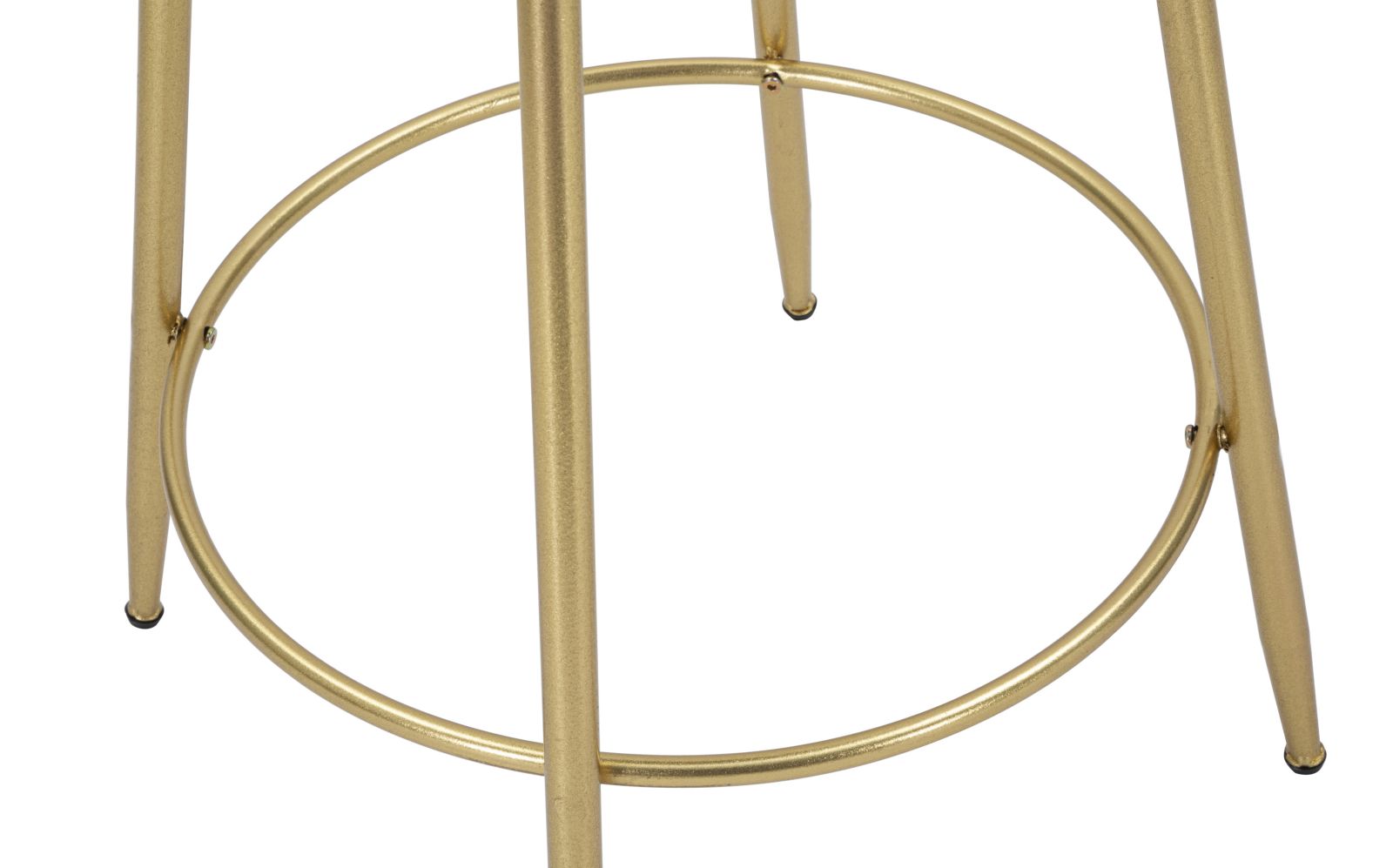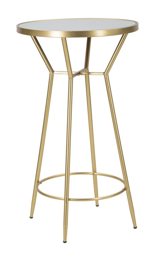 Mesa de bar redonda sencilla en metal dorado y tapa de cristal espejado. Diseño esencial, lineal y limpio para simplemente dar un toque de glamour a la barra de la esquina de su hogar.