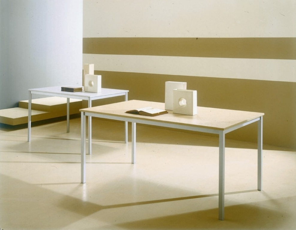 Mesa fija de diseño esencial y contemporáneo, con estructura sólida de acero lacado que asegura estabilidad y durabilidad.