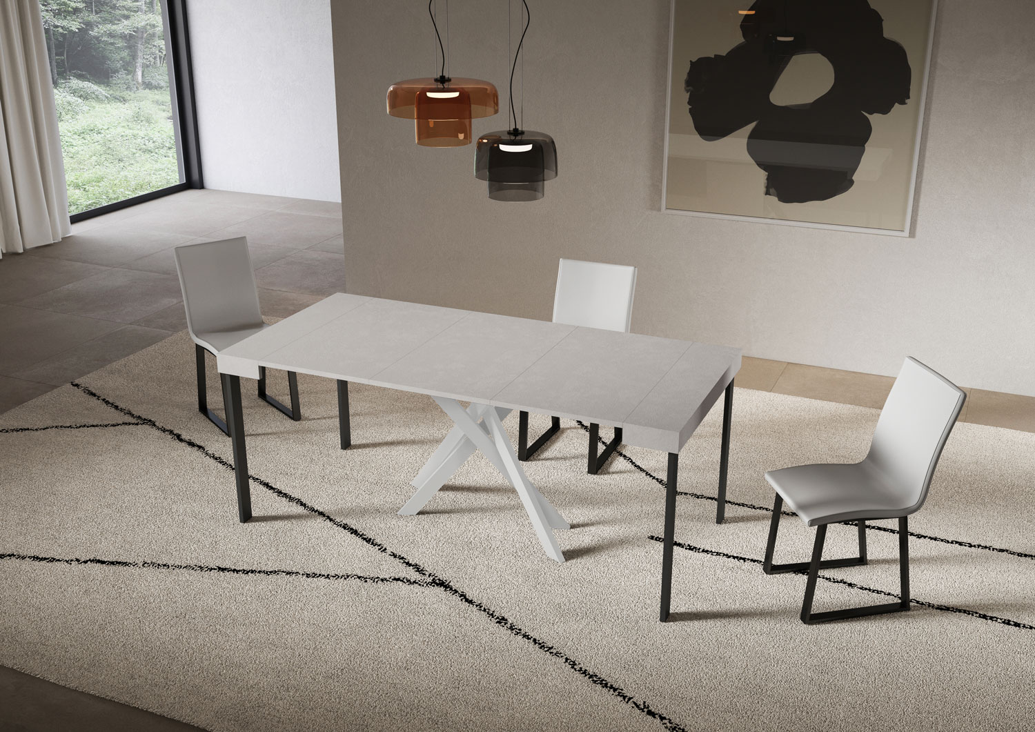 Consola extensible Saki , versátil y resistente, un complemento perfecto para cualquier ambiente del hogar: entrada, cocina, comedor, sala de estar o pasillo. La consola extensible Saki se transforma en una mesa de comedor extendendose hasta 300 cm, puede acomodar 14 personas. Hecha de paneles de melamina con patas en hierro. El sistema de extensión con guías telescópicas de aluminio y los soportes laterales incluidos hacen que la consola sea estable y resistente. Cuando la consola está cerrada, las extensiones deben almacenarse en otro lugar. Producto Itamoby Made in Italy Dimensión: Consola cerrada: L.90 A.40 AL.77 cm Longitud con 1 extensión: 92 cm Longitud con 2 extensiones: 144 cm Longitud con 3 extensiones: 196 cm Longitud con 4 extensiones: 248 cm Longitud con 5 extensiones: 300 cm