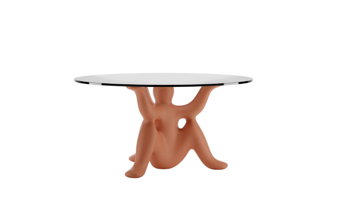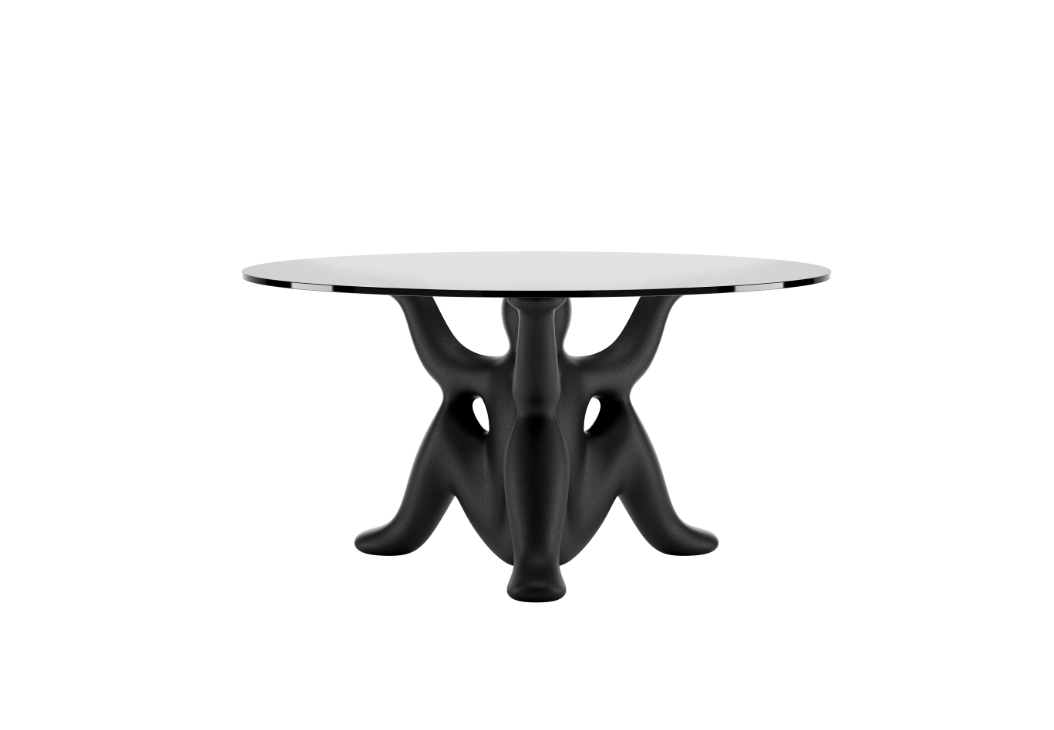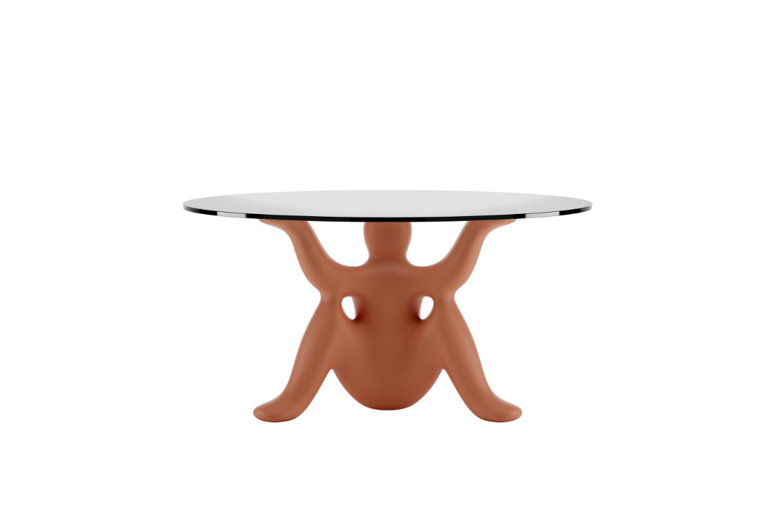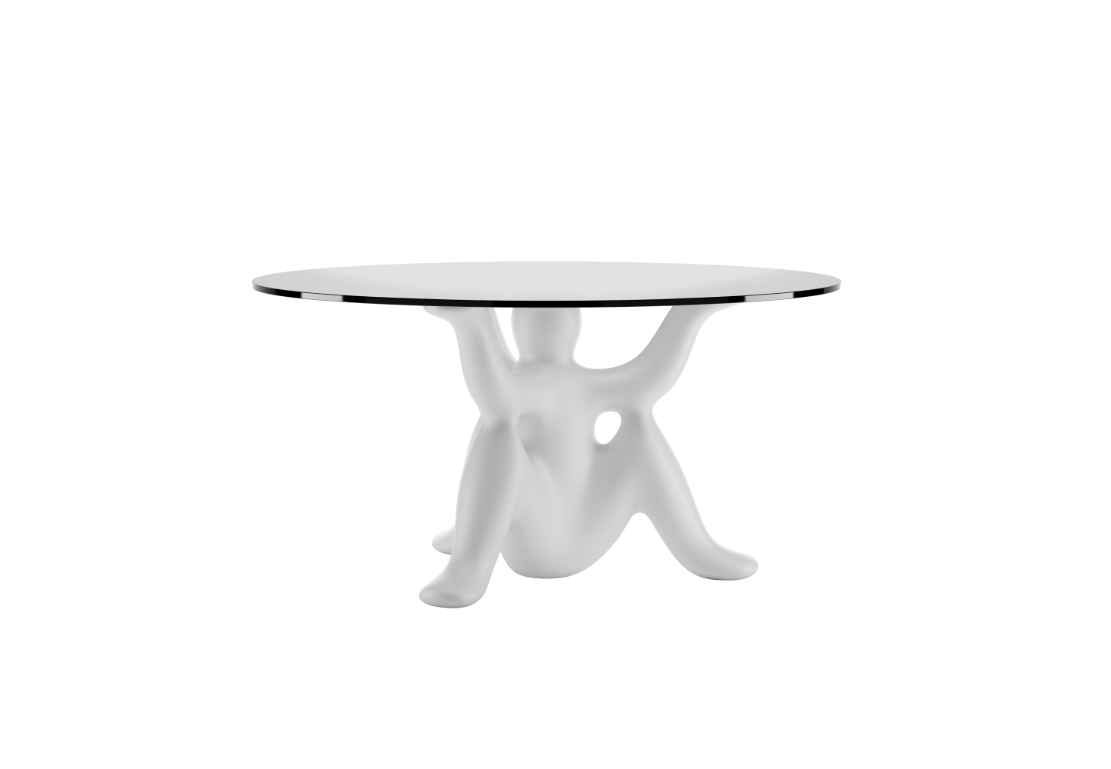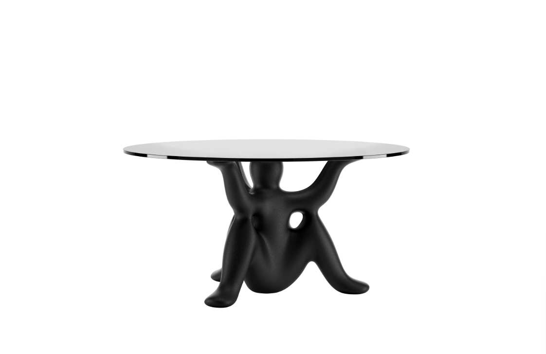 HelpYourSelf es la colección de mesas diseñada por Philippe Starck para Qeeboo, donde genios fantásticos sostienen un gran tablero de cristal con ironía y fuerza.