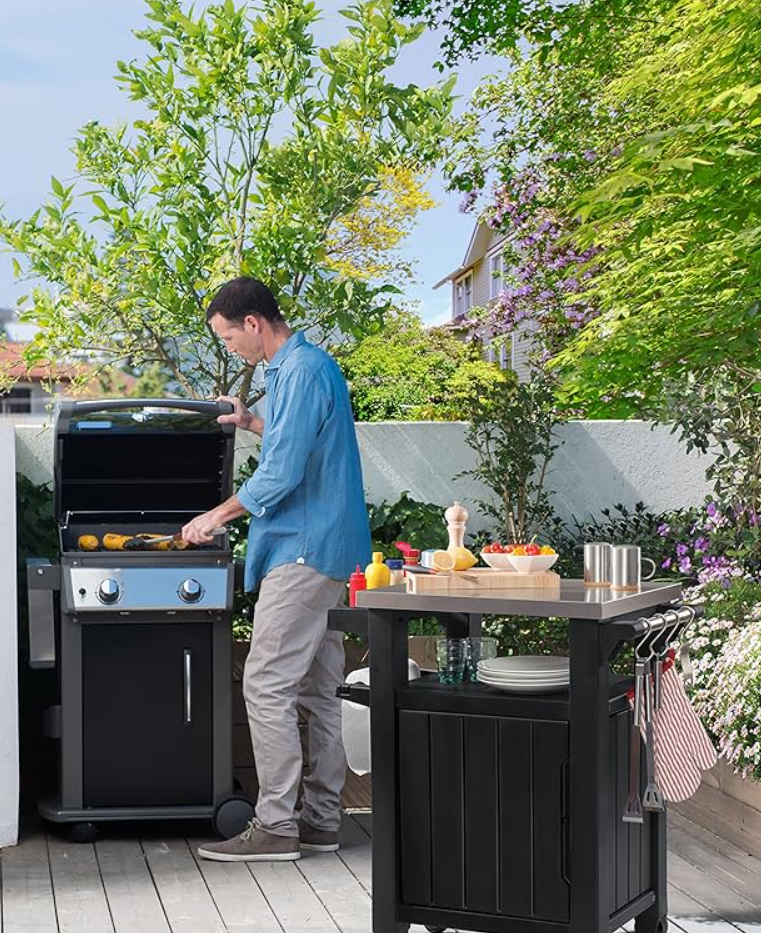 La mesa Keter Unity es una práctica mesa multifuncional, ideal para actividades al aire libre como barbacoas o cocinar.
