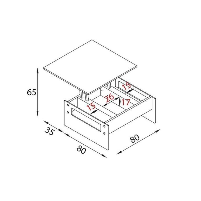 Mesa de centro multifuncional con tapa elevable y práctico contenedor oculto.