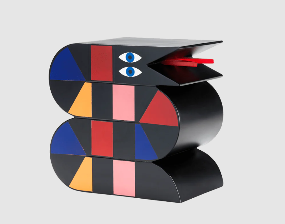 En madera lacada en negro, sinuosa y atrevida, diseñada para ambientes interiores.