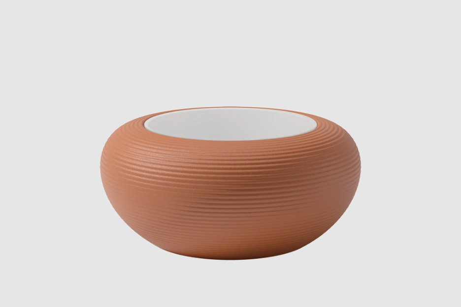 Está disponible en seis acabados: tres en colores sólidos y tres obtenidos mezclando materiales reciclados en 2-3 tonalidades diferentes.