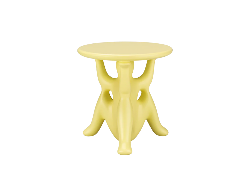 HelpYourSelf es la colección de mesas diseñada por Philippe Starck para Qeeboo, donde genios fantásticos sostienen un tablero redondo con ironía y estilo.