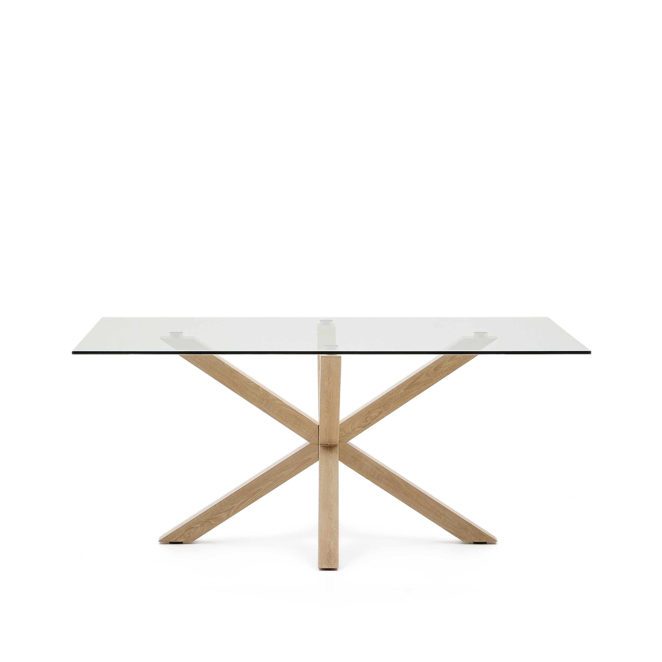 Mesa de cristal Argo con patas de acero efecto madera, 160 x 90 cm