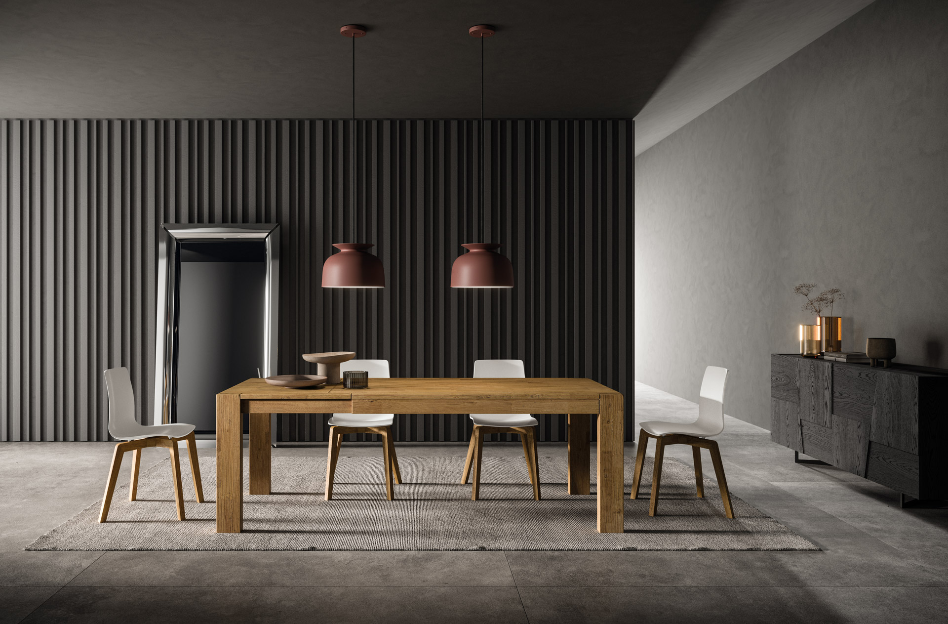 Una de las características más innovadoras de la mesa MOOD es el sistema de extensión integrado. Cuando sea necesario, podrás ampliar la mesa mediante una práctica extensión oculta en el interior de la estructura, que aumenta la distancia entre las patas y ofrece espacio extra para alojar cómodamente a amigos y familiares. La funcionalidad se une a la practicidad en una solución elegante y discreta.