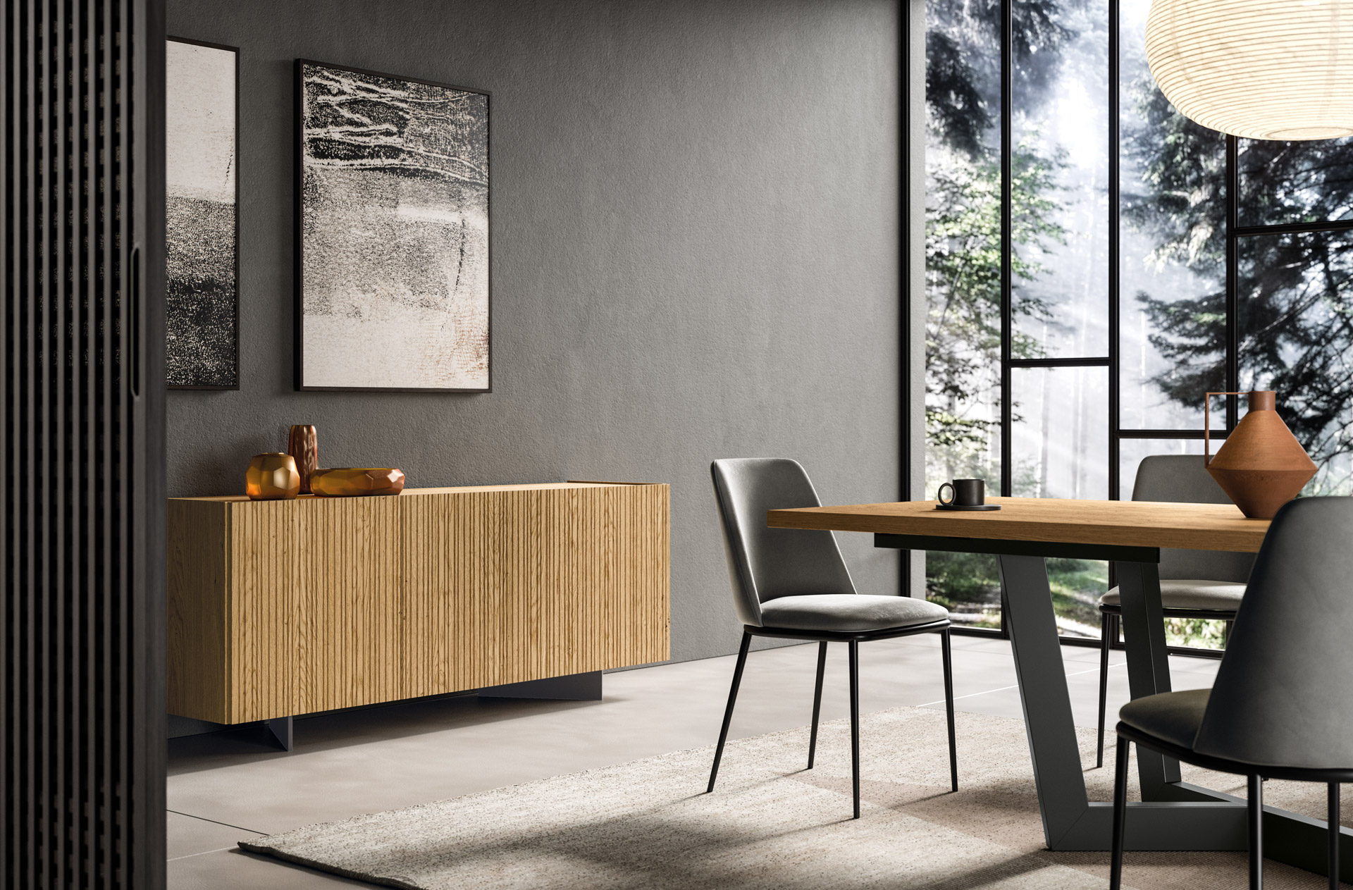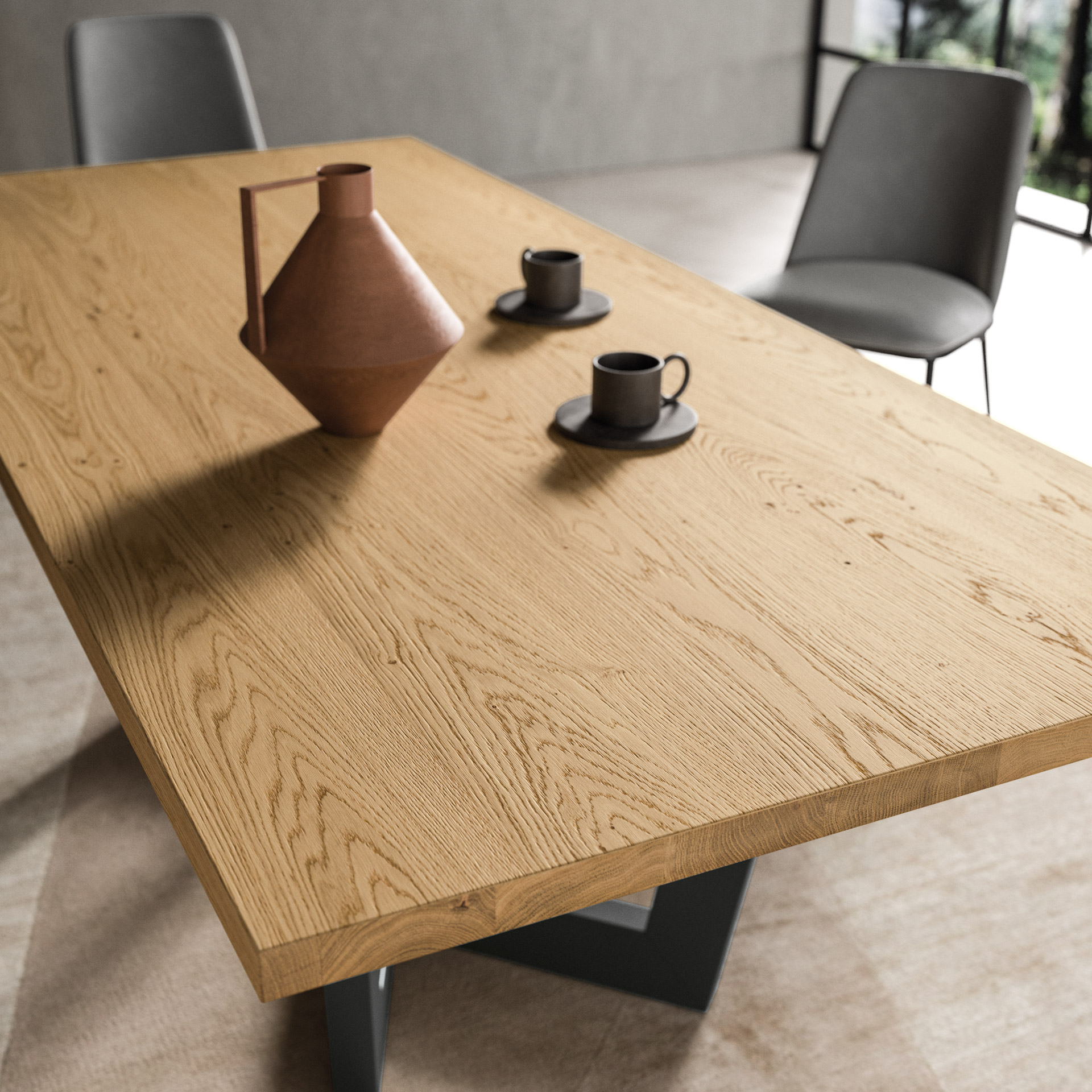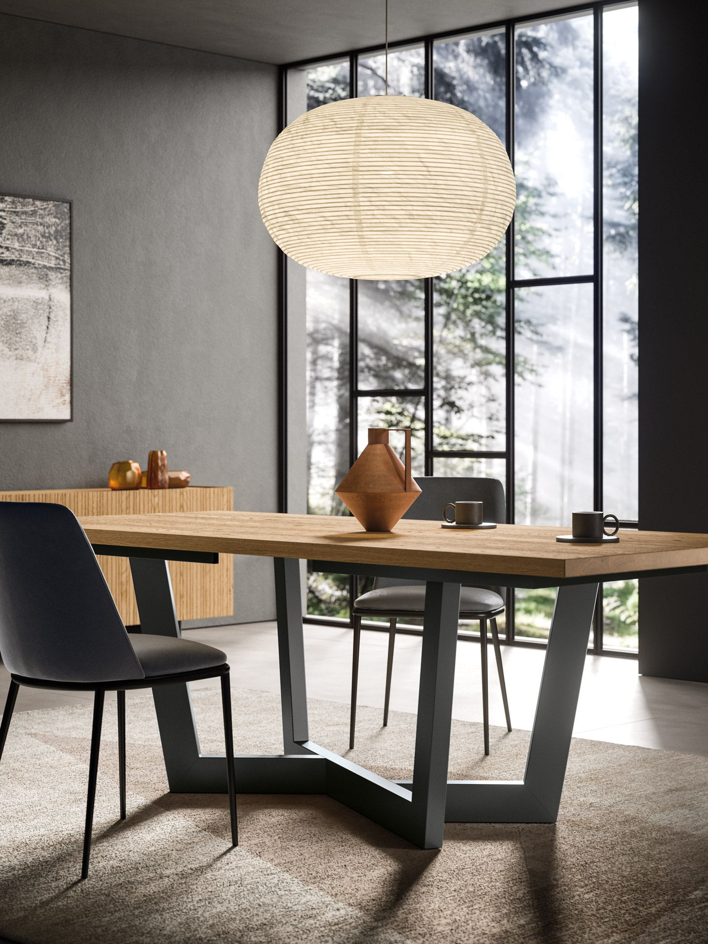 Eso no es todo: la mesa Rio está diseñada para adaptarse a tus necesidades. Con su capacidad de extenderse gracias a una o más extensiones, podrás recibir fácilmente a amigos y familiares, transformando una mesa compacta en una superficie espaciosa y acogedora.