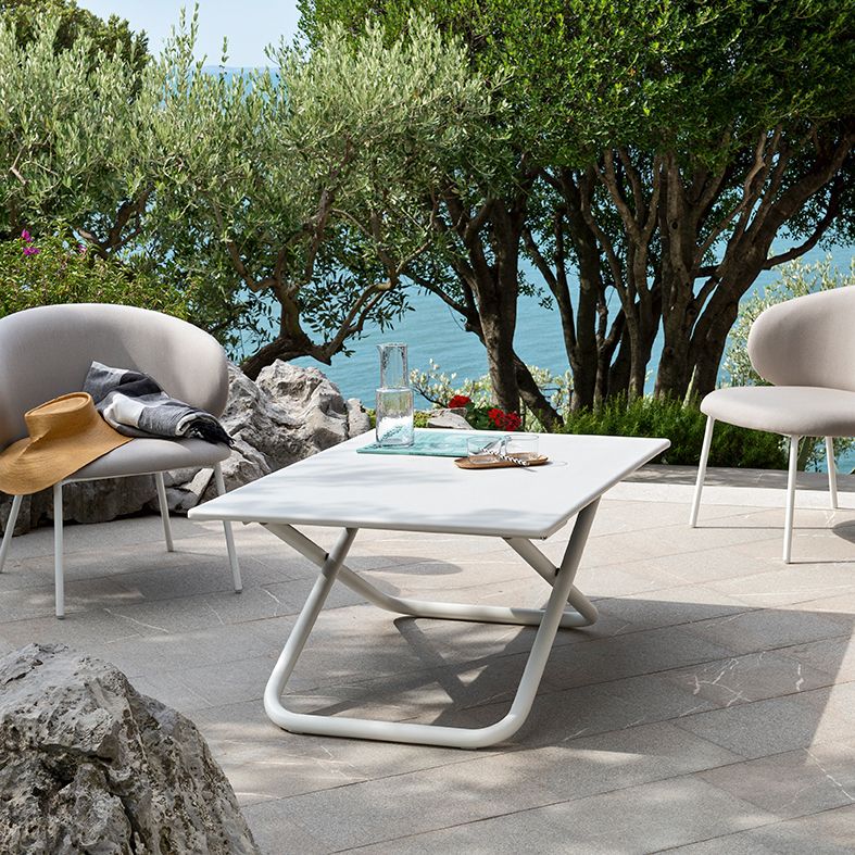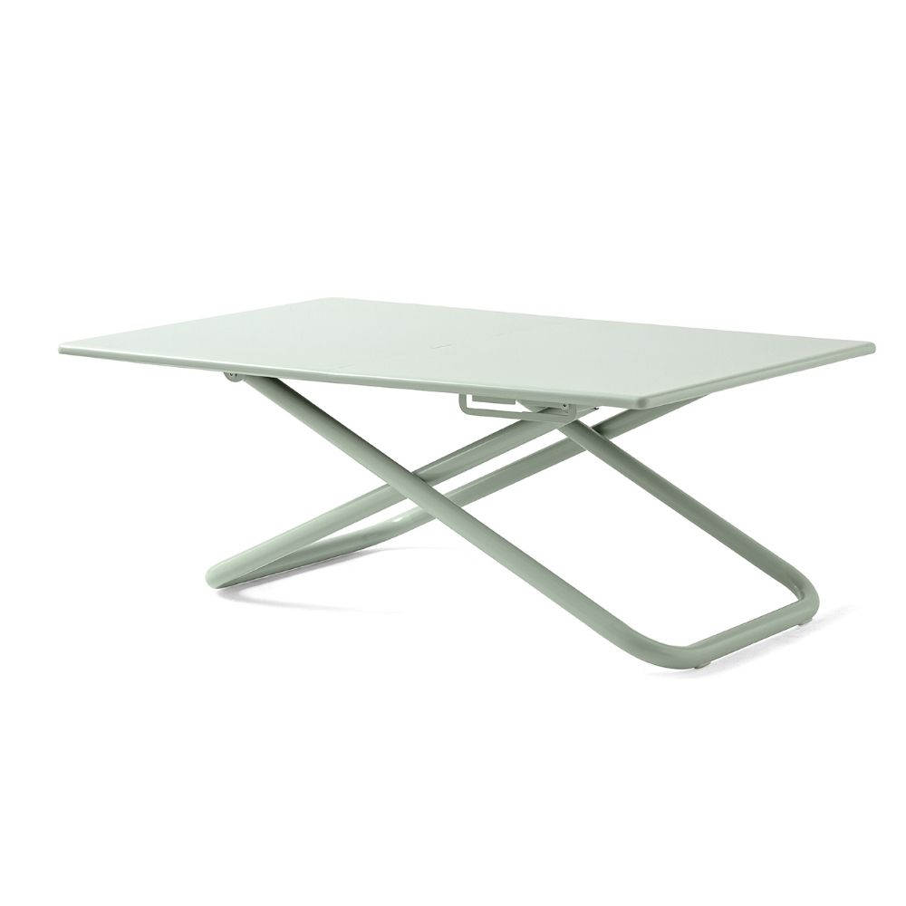 La mesa de exterior Easy es regulable en altura y está diseñada para ofrecer versatilidad y funcionalidad, perfecta para adaptarse a diferentes situaciones y necesidades, tanto en la zona de salón como en el comedor exterior.