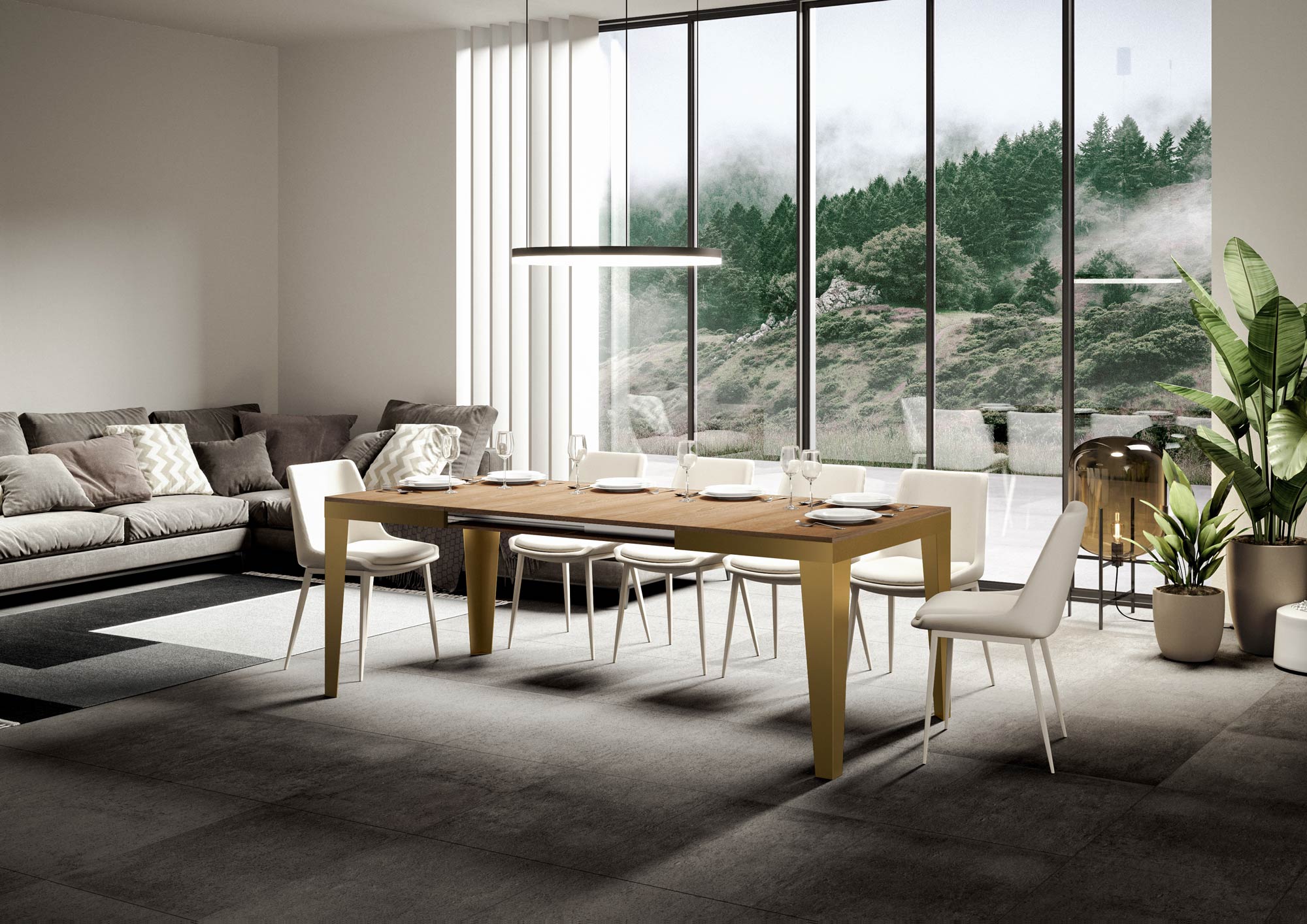 Mesa extensible 90x120/380 cm Flame Evolution estructura dorada