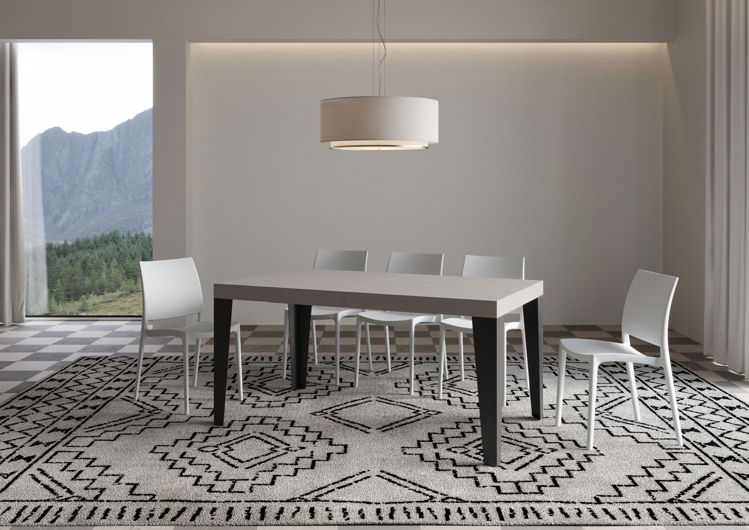 Mesa extensible Flame 160, con diseño lineal, sencillo y esencial, se adapta a cualquier estilo de decoración y se revela ideal tanto como mesa de comedor como elemento de decoración para la sala de estar, donde recibir a los invitados con estilo. La mesa extensible Flame puede extenderse progresivamente hasta 420 cm y puede acomodar 18 personas. Hecha con paneles de melamina, patas en hierro, tapa trabajada con proceso miter folding. El sistema de extensión con guías telescópicas de aluminio y el soporte central suministrado hacen que la mesa sea estable y robusta también cuando totalmente extendida. Cuando no se utilizan, dos extensiones se pueden almacenar debajo de la tapa superior, listas para el uso, las otras tres tienen que ser guardads en otro lugar. Producto Itamoby Made in Italy Dimensiones: Mesa cerrada: L.160 A.90 AL.77 cm Longitud con 1 extensión: 212 cm Longitud con 2 extensiones: 264 cm Longitud con 3 extensiones: 316 cm Longitud con 4 extensiones: 368 cm Longitud con 5 extensiones: 420 cm