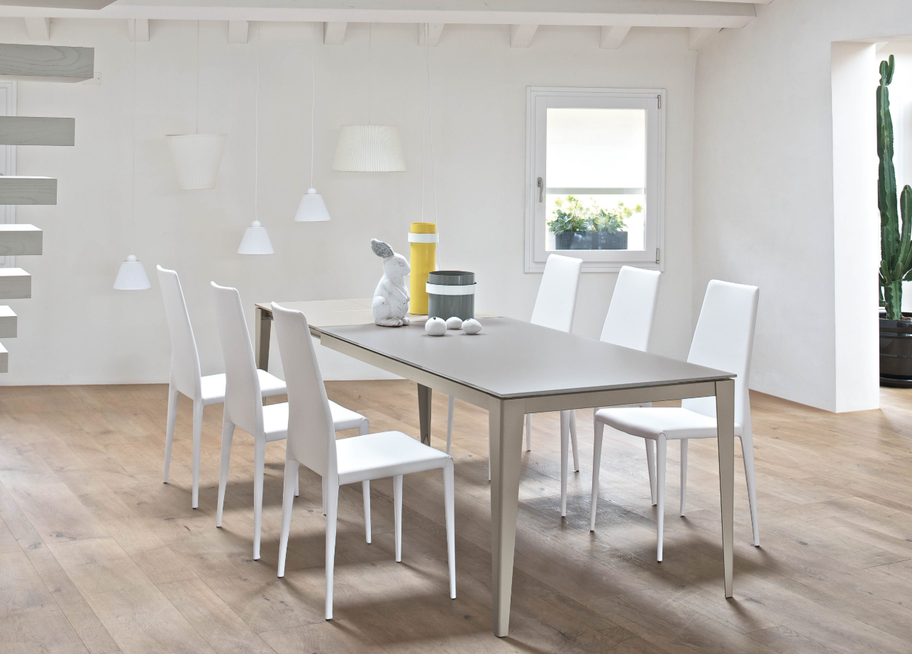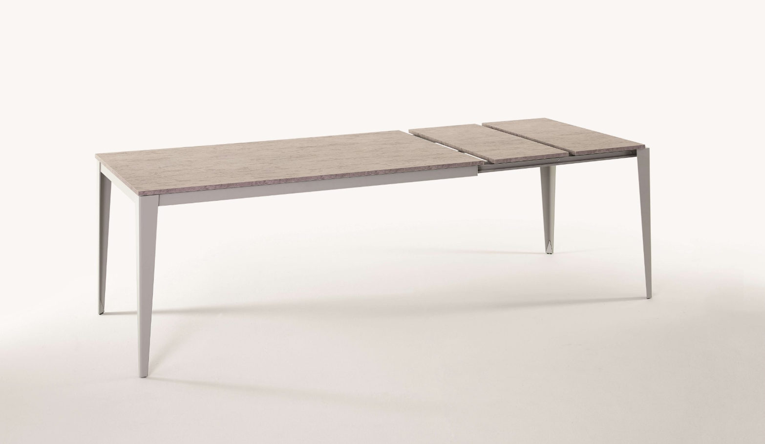 Mesa extensible de diseño esencial y contemporáneo, con estructura de acero macizo lacado.