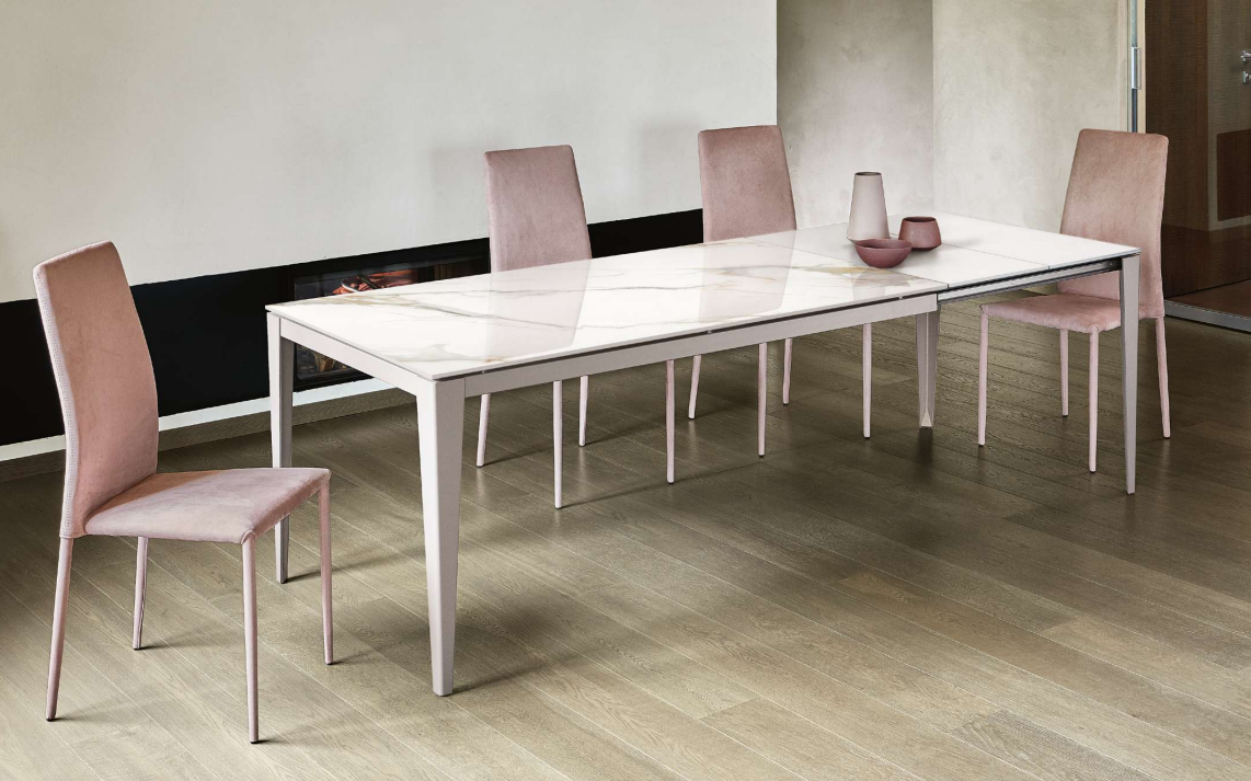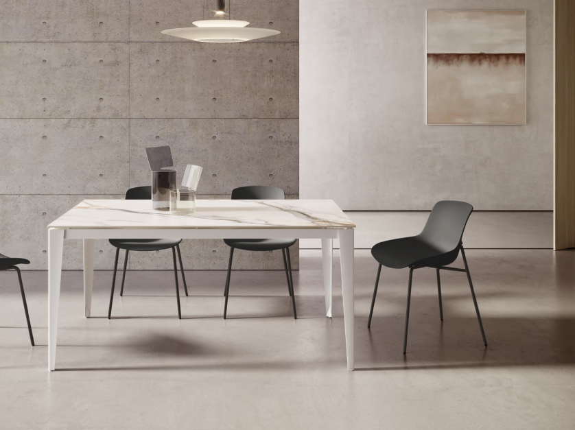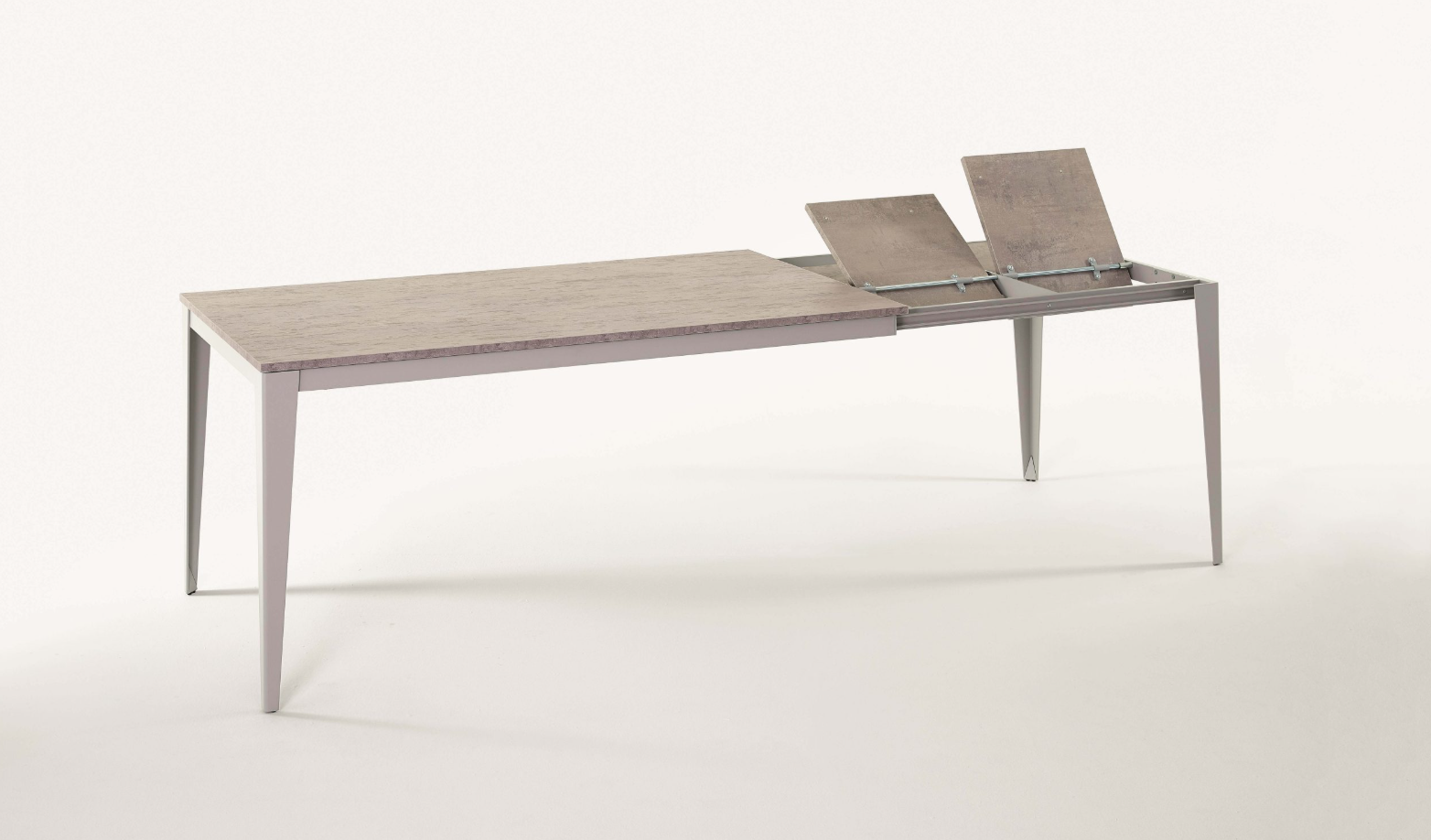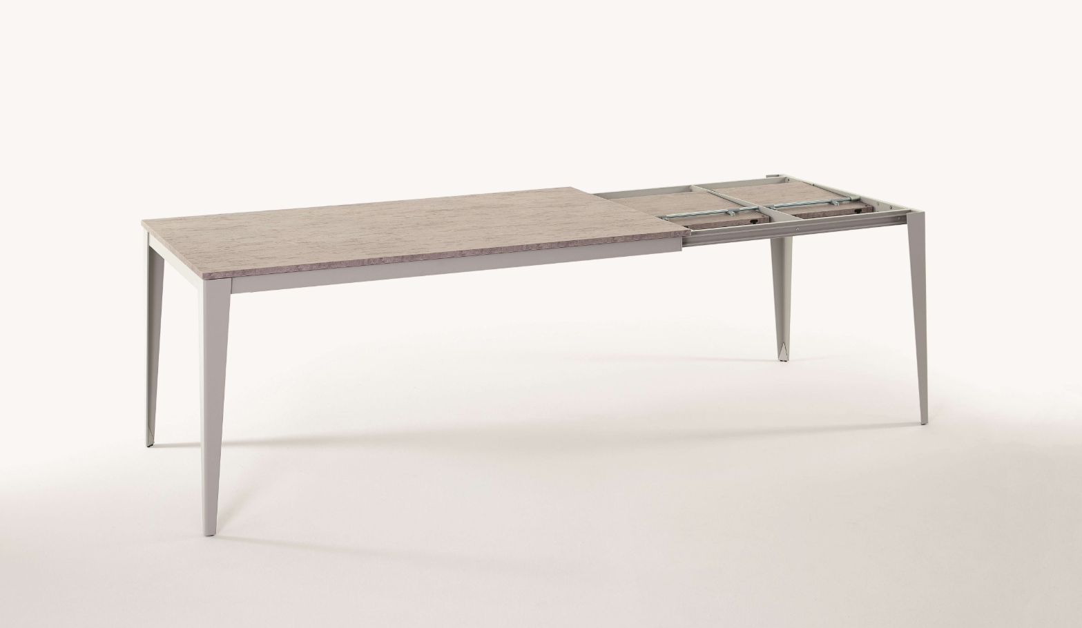 Mesa extensible de diseño esencial y contemporáneo, con estructura de acero macizo lacado.