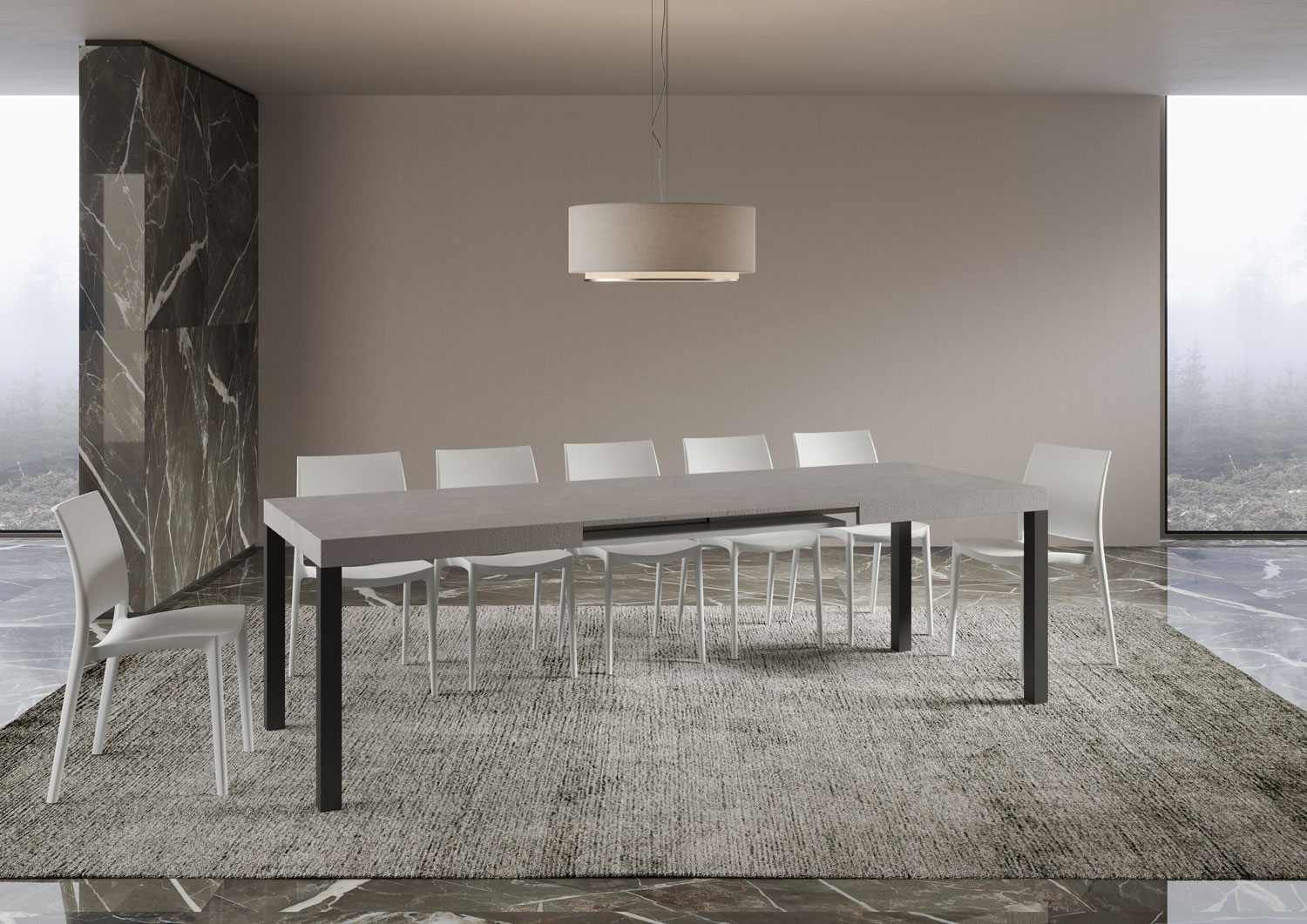Mesa extensible Everyday 160, con diseño lineal, sencillo y esencial, se adapta a cualquier estilo de decoración y se revela ideal tanto como mesa de comedor como elemento de decoración para la sala de estar, donde recibir a los invitados con estilo. La mesa extensible Everyday puede extenderse progresivamente hasta 264 cm y puede acomodar 12 personas. Hecha con paneles de melamina, patas en hierro, tapa trabajada con proceso miter folding. El sistema de extensión con guías telescópicas de aluminio hacen que la mesa sea estable y robusta también cuando totalmente extendida, sin que necesite ningún soporte adicional. Cuando no se utilizan, las extensiones se pueden almacenar debajo de la tapa superior, listas para el uso. Producto Itamoby Made in Italy Dimensiones: Mesa cerrada: L.160 A.90 AL.77 cm Longitud con 1 extensión: 212 cm Longitud con 2 extensiones: 264 cm
