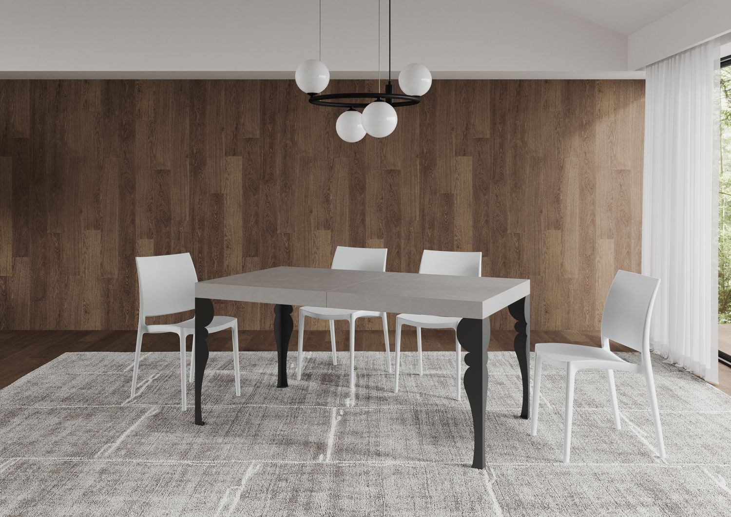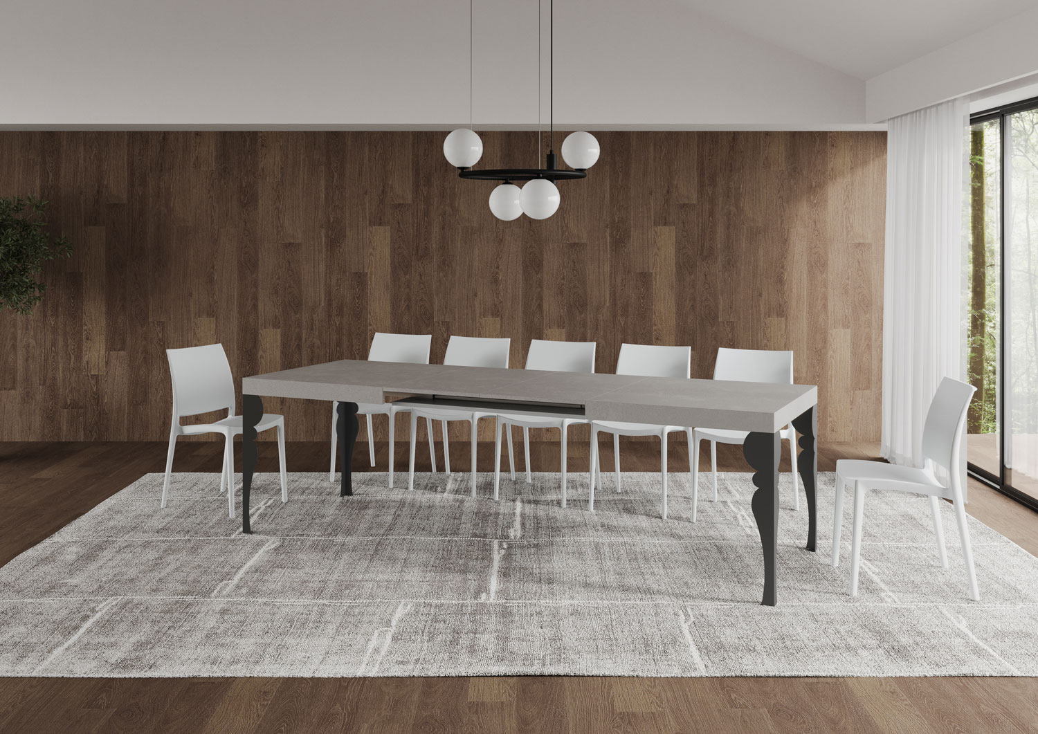 Mesa extensible Paxon 160, con diseño moderno, elegante y extravagante, se adapta a cualquier estilo de decoración y se revela ideal tanto como mesa de comedor como elemento de decoración para la sala de estar, donde recibir a los invitados con estilo. La mesa extensible Paxon puede extenderse progresivamente hasta 264 cm y puede acomodar 12 personas. Hecha con paneles de melamina, patas en hierro, tapa trabajada con proceso miter folding. El sistema de extensión con guías telescópicas de aluminio hacen que la mesa sea estable y robusta también cuando totalmente extendida, sin que necesite ningún soporte adicional. Cuando no se utilizan, las extensiones se pueden almacenar debajo de la tapa superior, listas para el uso. Producto Itamoby Made in Italy Dimensiones: Mesa cerrada: L.160 A.90 AL.77 cm Longitud con 1 extensión: 212 cm Longitud con 2 extensiones: 264 cm