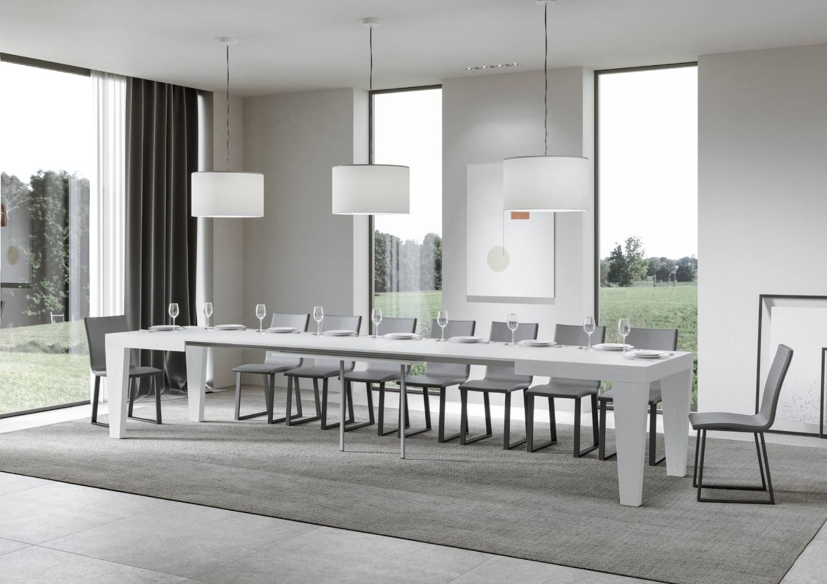 Su notable adaptabilidad también se refleja en su estructura: gracias a su práctico sistema de extensión, que incluye cinco hojas extensibles de ajuste progresivo, esta mesa se adapta fácilmente al uso diario en casa, alcanzando diferentes longitudes, hasta 390 cm. Sentar a tus invitados, ya sea para comer o cenar con algunos familiares o con muchos amigos, ya no será un problema: ¡la mesa Spimbo encontrará fácilmente un lugar para todos!
