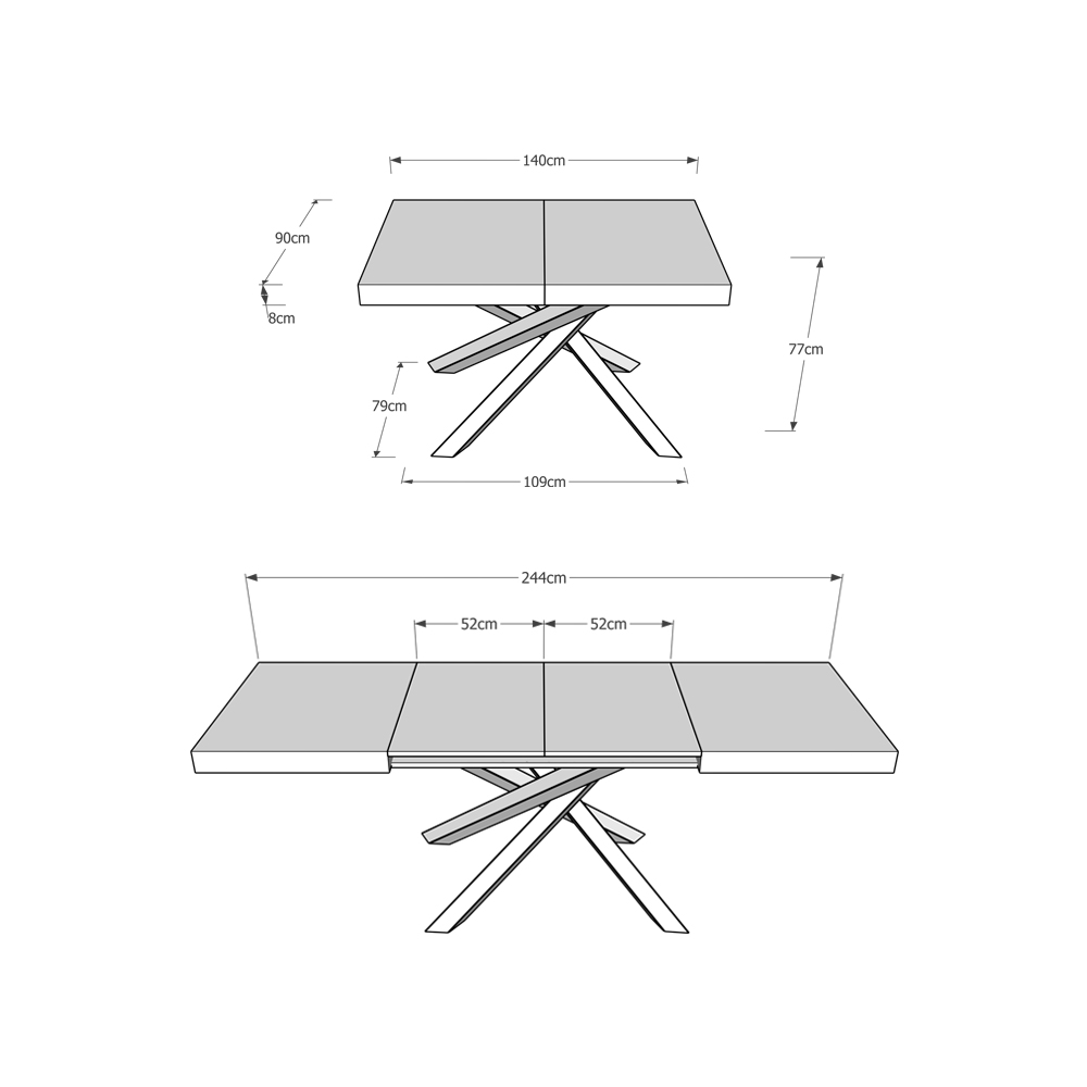 | Dimensiones | L.140 A.90 AL.77 cm (extensible hasta 244 cm) |