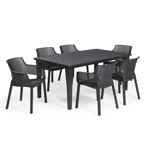 Fabricada en resina (polipropileno) con estructura interna de metal , la mesa Futura es extremadamente resistente a los agentes atmosféricos y a los rayos UV, sin riesgo de decoloración ni oxidación.