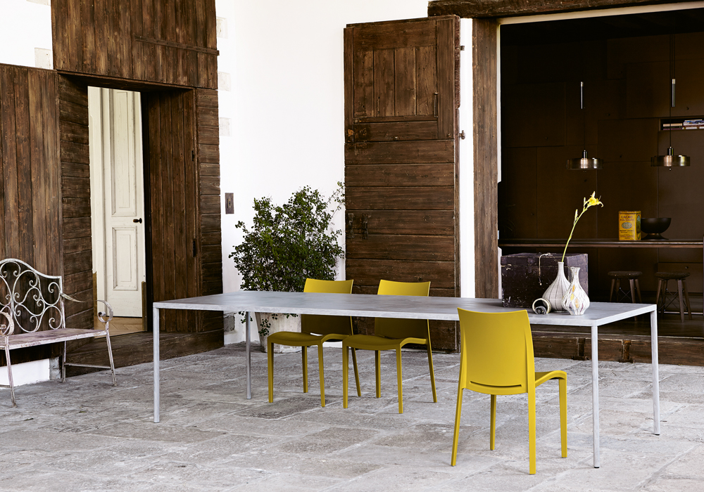 Mesa con estructura de aluminio y tablero de chapa de acero o resina