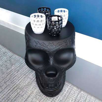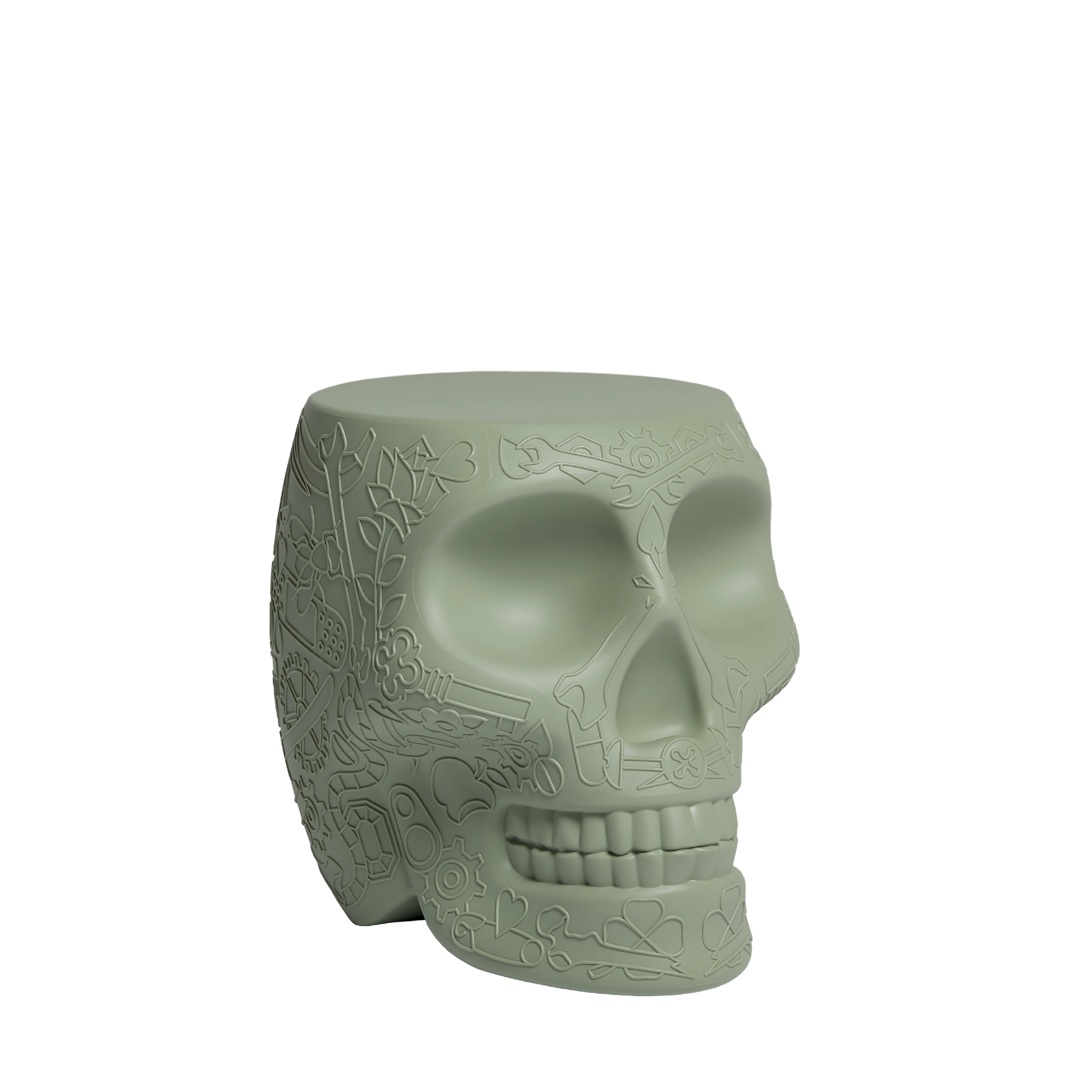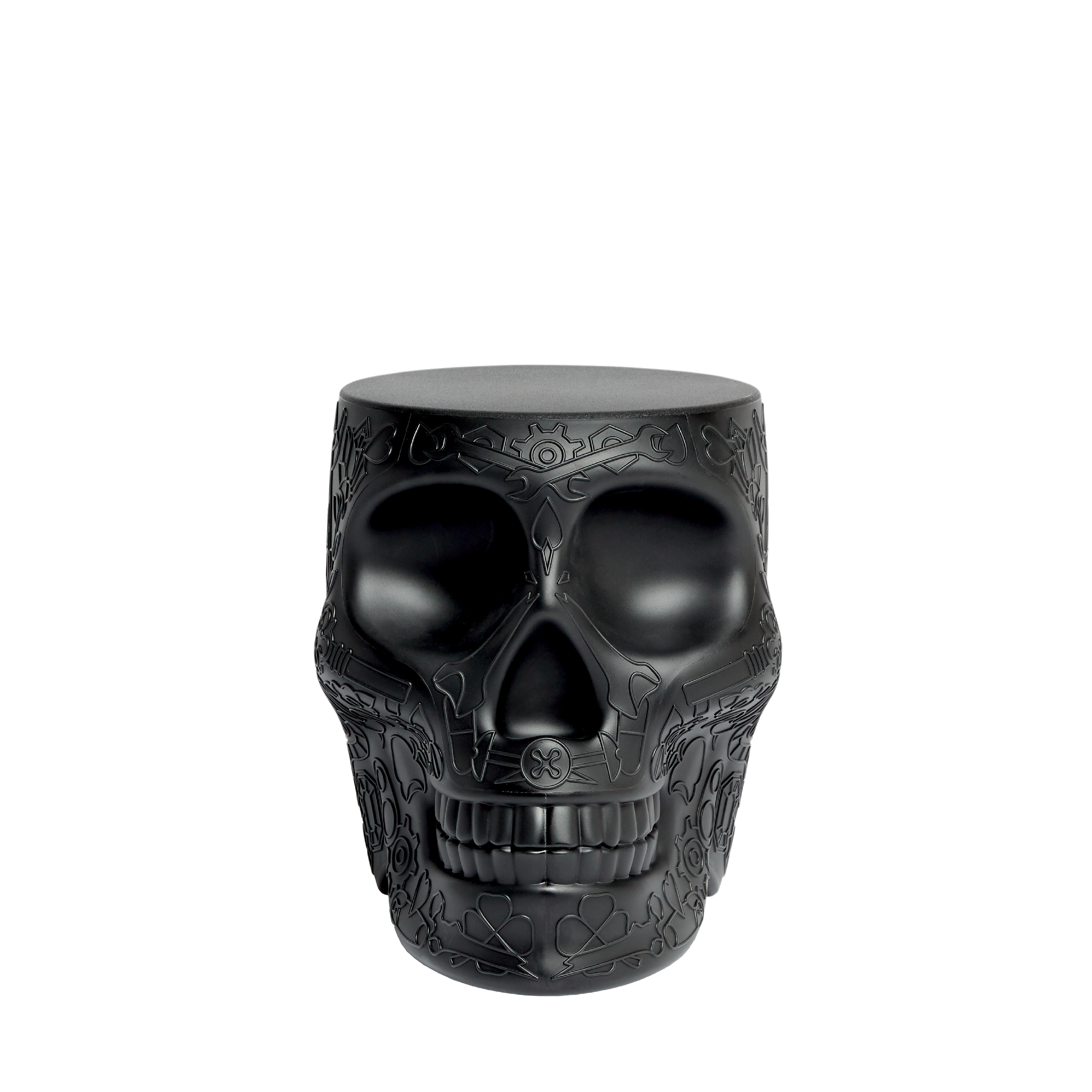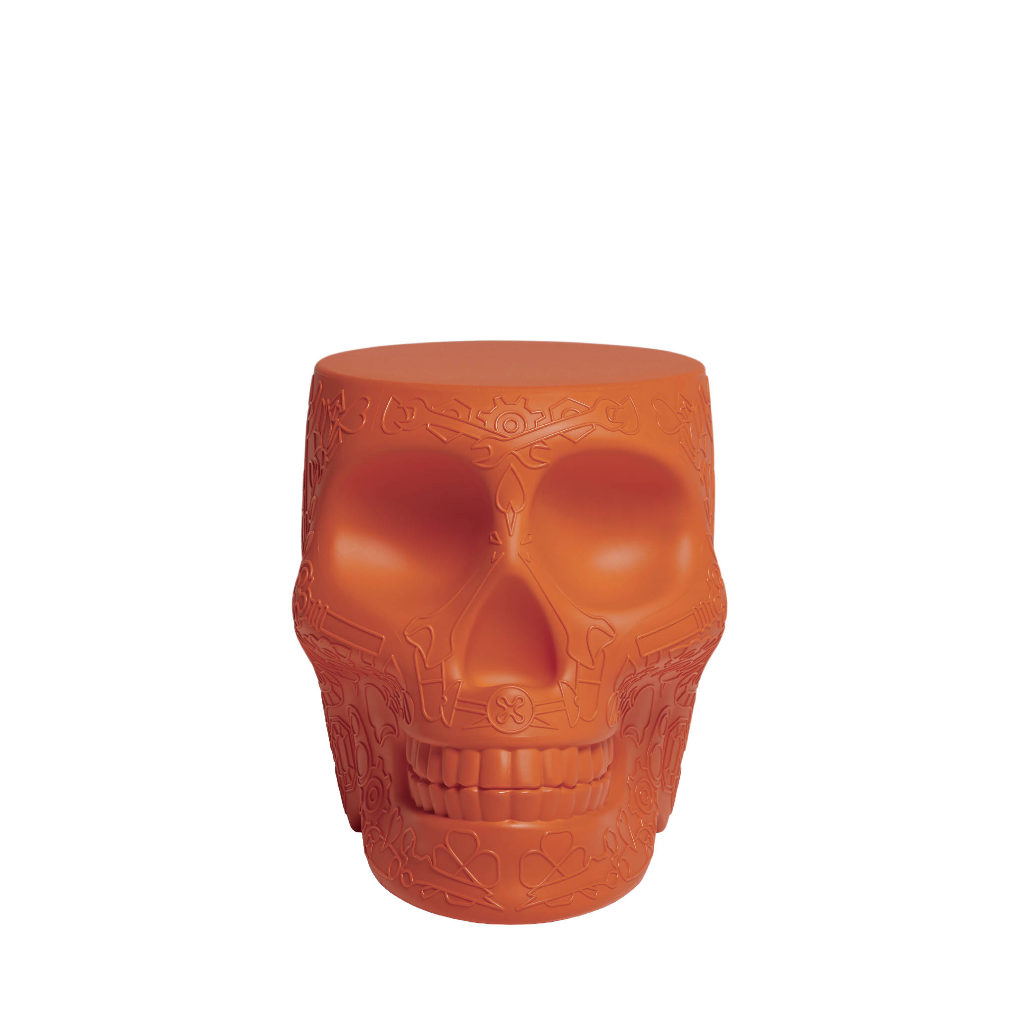 Mexico, diseñado por Studio Job, es un objeto de diseño en forma de calavera con un motivo gráfico en la superficie, que funciona como taburete y mesa auxiliar. Con reminiscencias de las tradicionales calaveras pintadas del país homónimo, México es un caprichoso recordatorio del carácter cíclico de nuestra presencia en la Tierra, para exorcizar la muerte y celebrar la vida. Perfecta para salones, comedores y espacios exteriores.