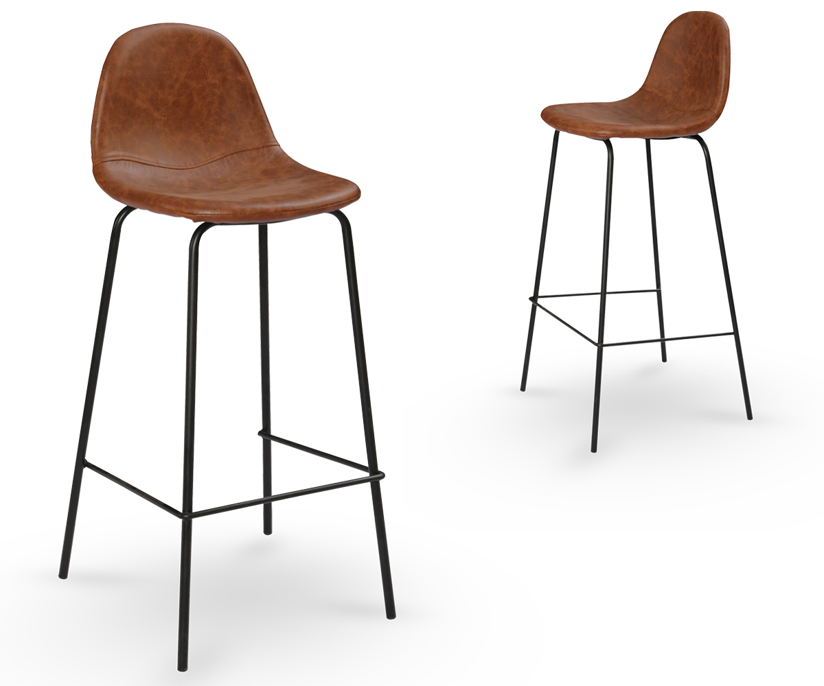 Taburete con estructura de metal Ø 19x1.5 mm, pintado con polvos termoestables negros resistentes a los arañazos.