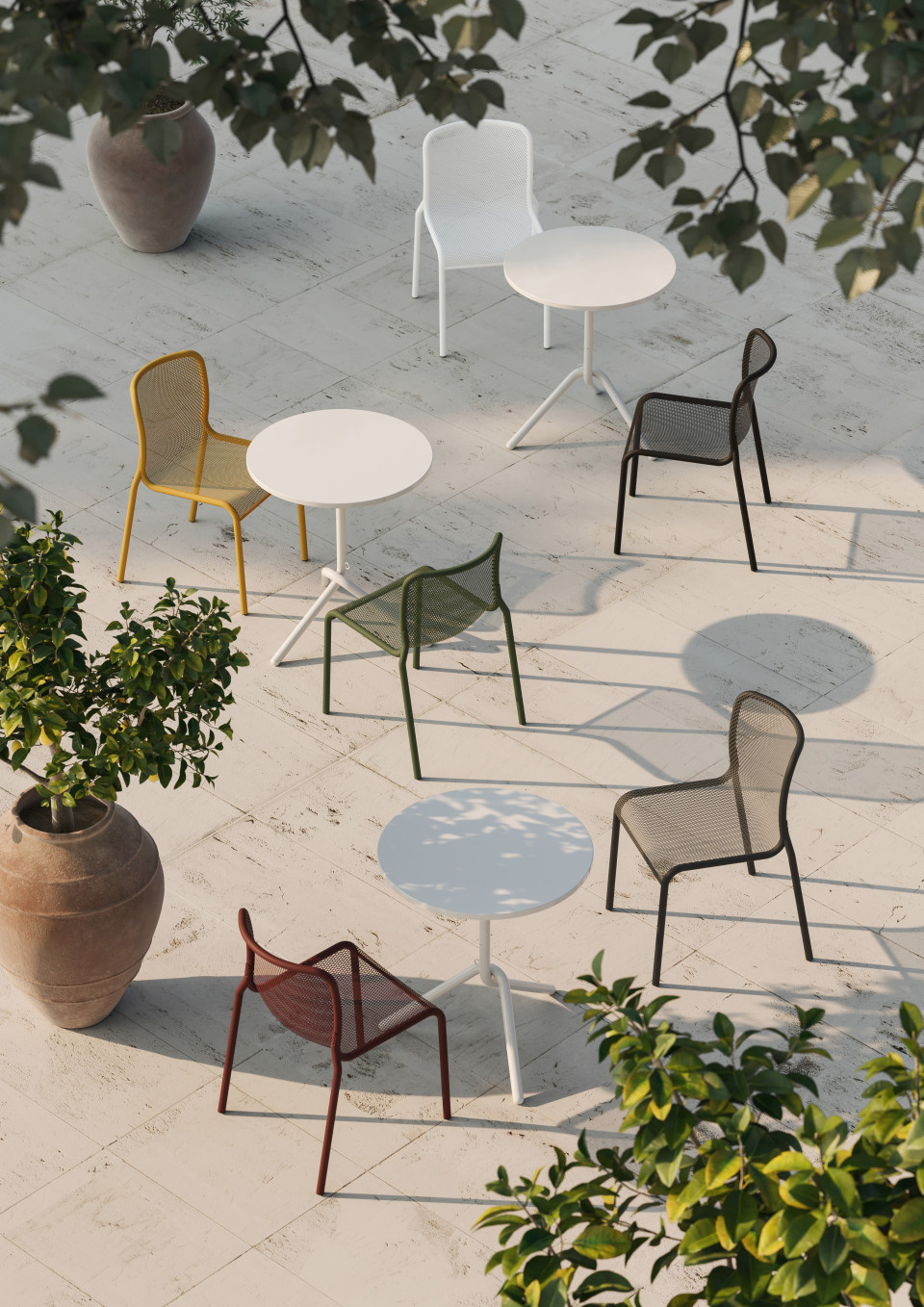 MOMO NET es una nueva colección de asientos completamente en metal pintado, para cuya realización se ha dedicado un intenso estudio, destinado a encontrar la tecnología más adecuada para la realización de los sutiles detalles técnicos y estéticos que distinguen el resultado.