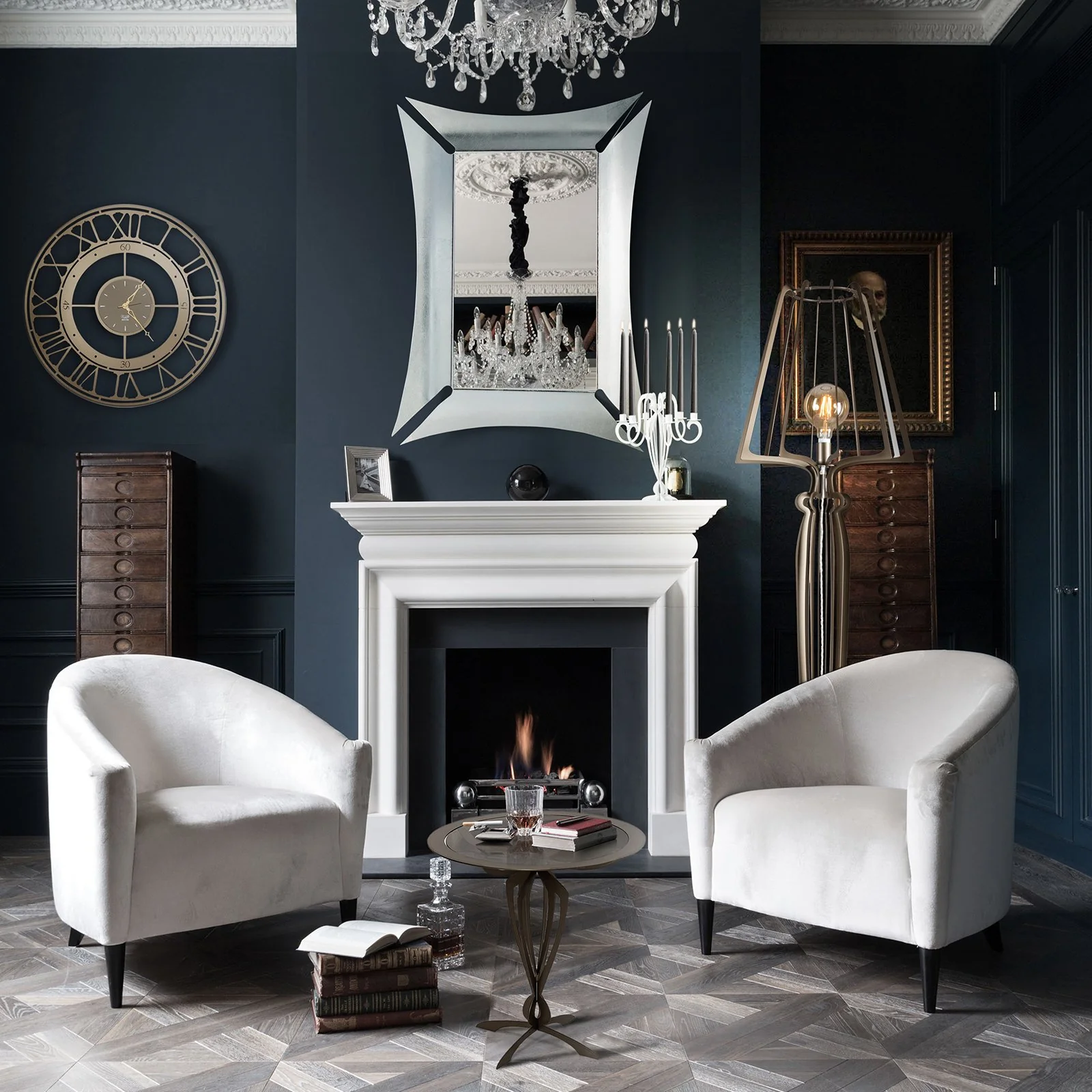 El espejo central está enmarcado por una estructura ligera pero escenográfica, ideal para entradas, salones o dormitorios . Disponible en diferentes acabados, se adapta fácilmente a ambientes modernos o clásicos renovados.