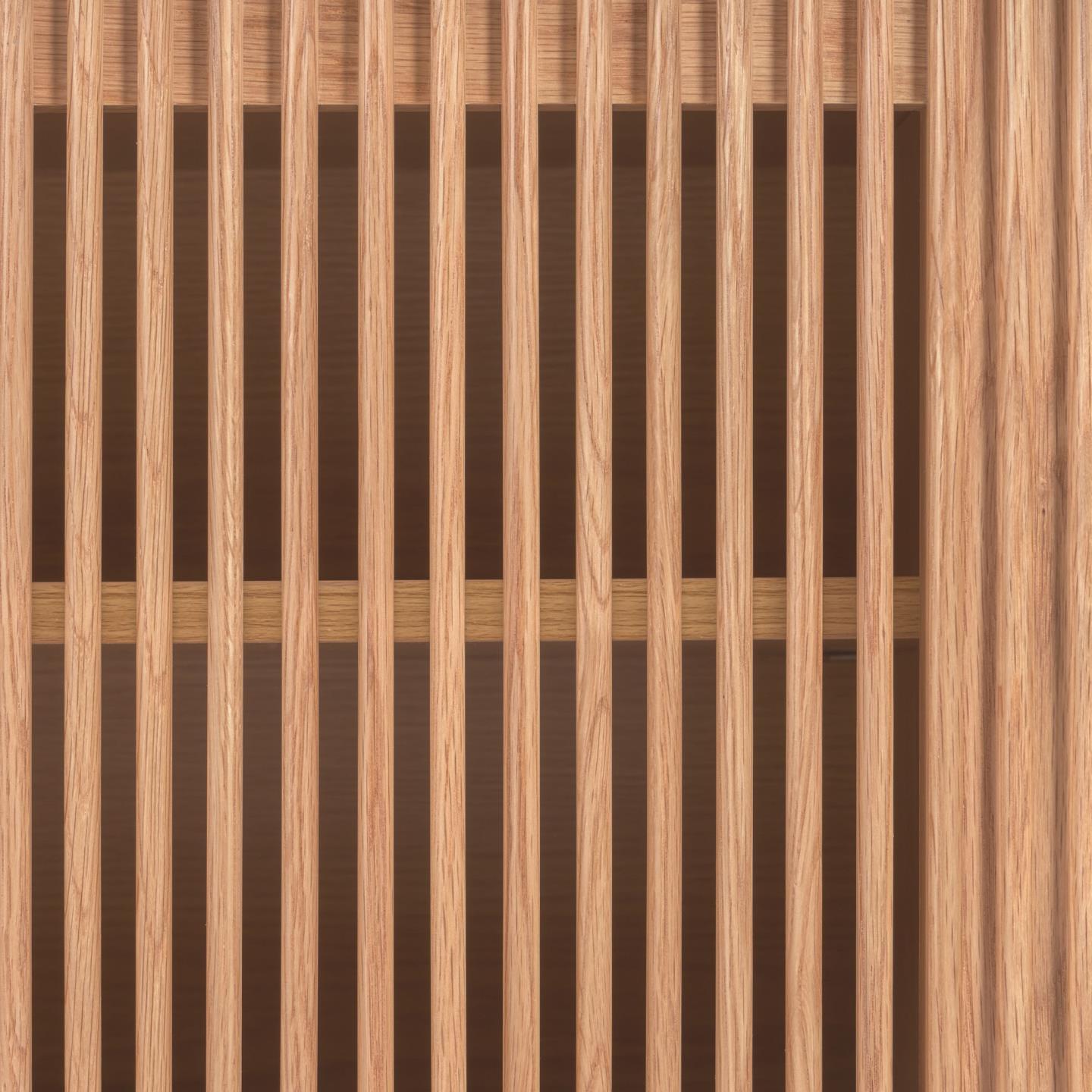 | Material | 78% MDF E0 (tablero de fibra de densidad media con bajas emisiones de formaldehído clase E0), 20% chapa de roble (Quercus alba), 2% madera de fresno (Fraxinus Excelsior) |