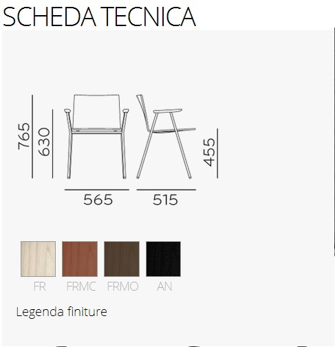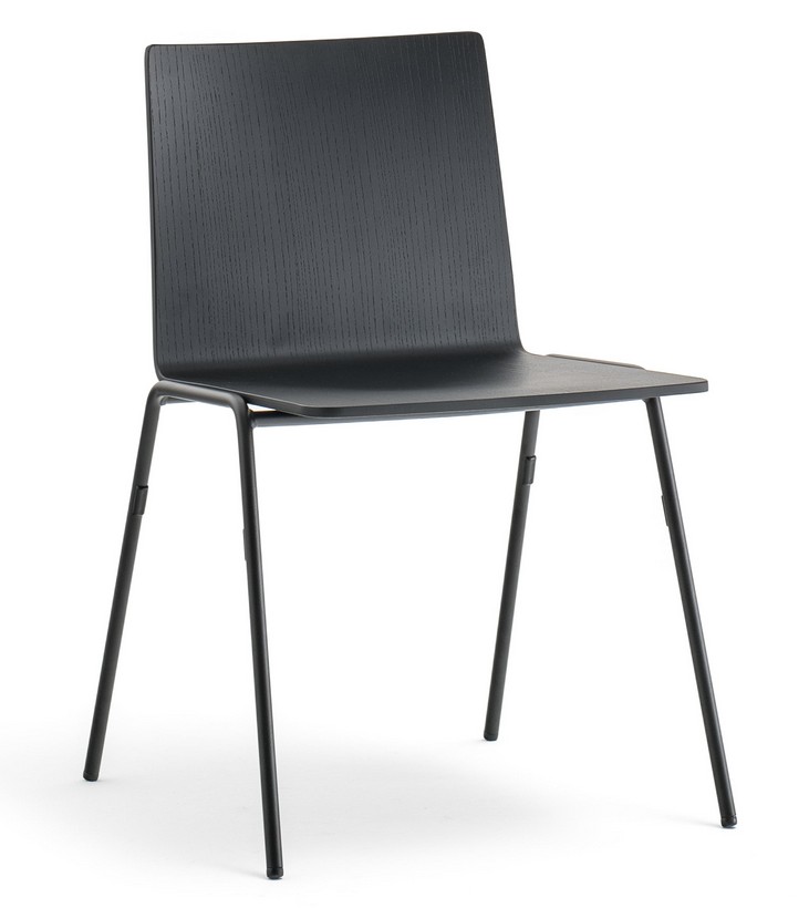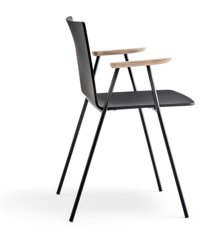 El modelo 5711 tiene un marco de varilla de acero pintado de negro de 16 mm y una carcasa de madera contrachapada de fresno. También disponible en la versión con reposabrazos 5712.
