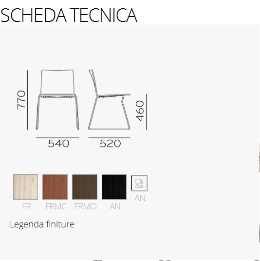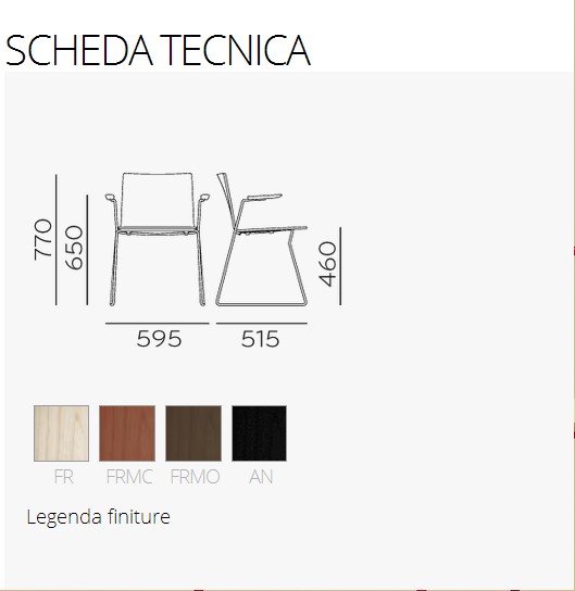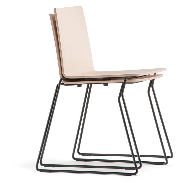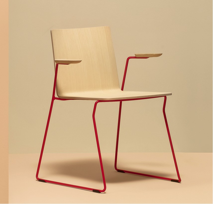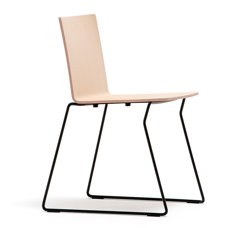 El modelo 5714 tiene un marco de trineo en varilla de acero pintado de 11 mm y carcasa en madera contrachapada de fresno. También disponible en la versión con reposabrazos.