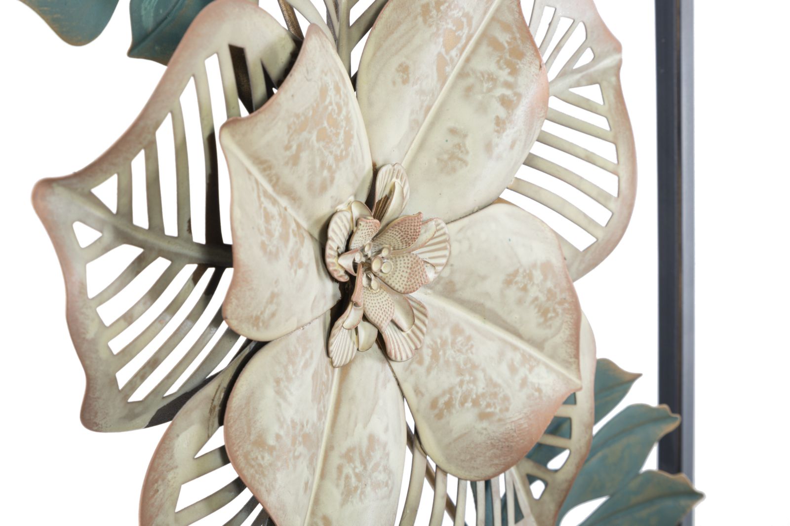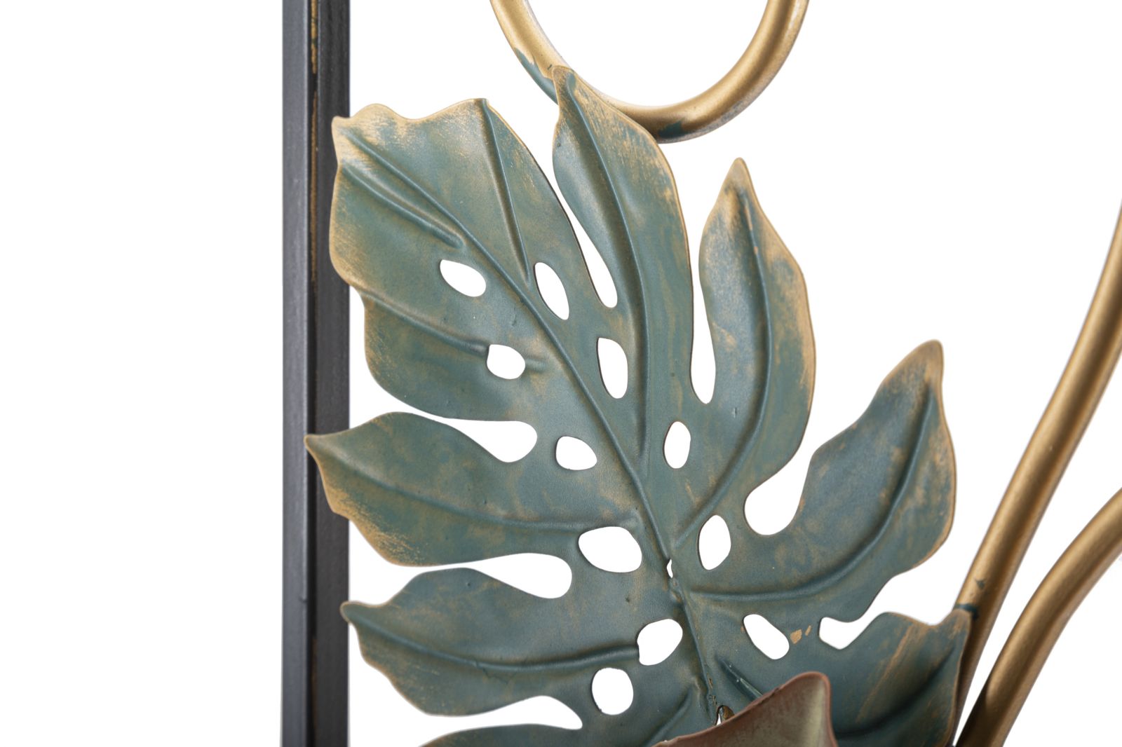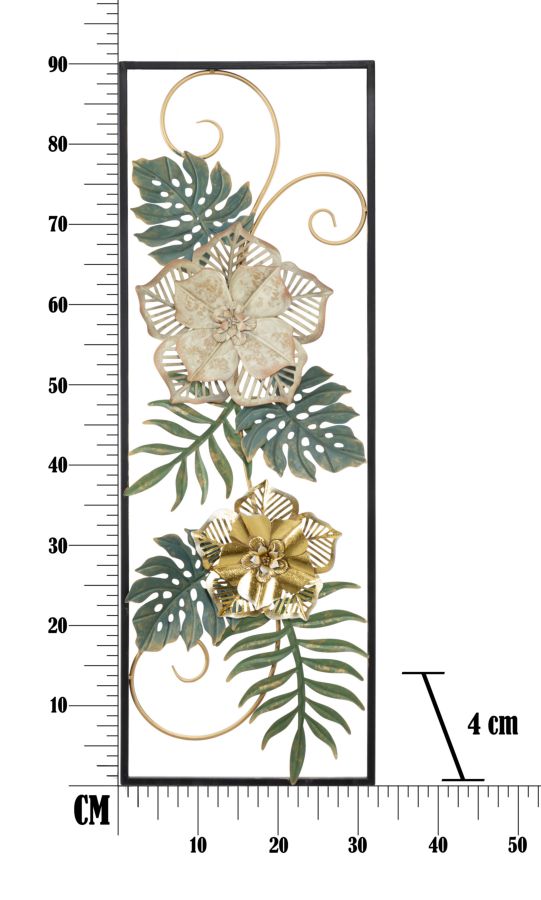 Panel rectangular con hojas de metal. Los paneles 3D son la nueva tendencia para decorar paredes. El metal lacado se declina en formas geométricas, vegetales o animales que dan un encanto glamuroso y sorprendente a cualquier ambiente