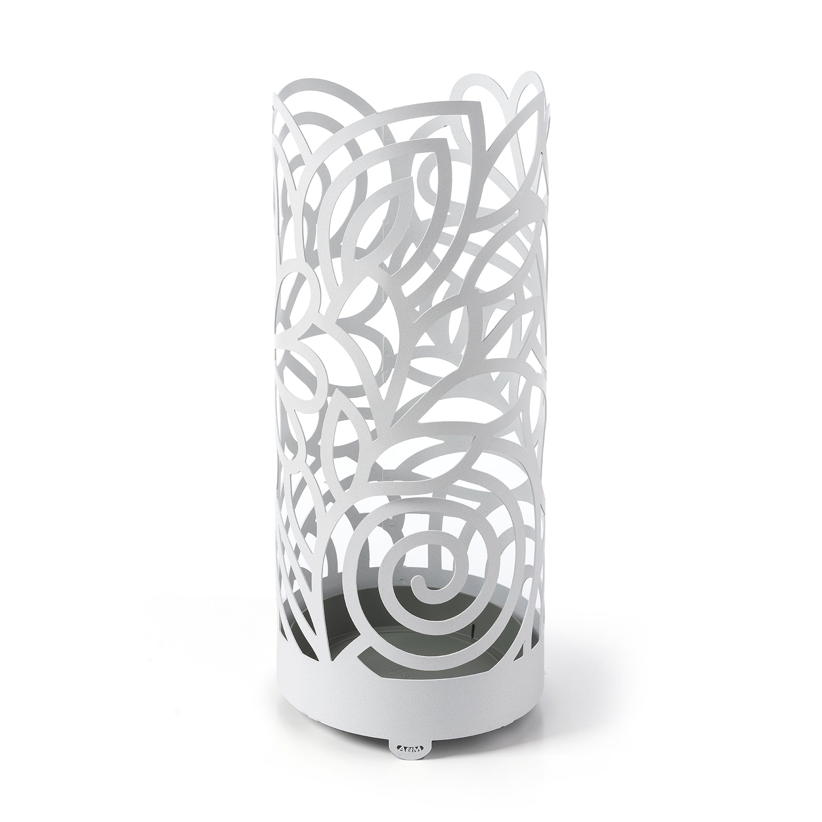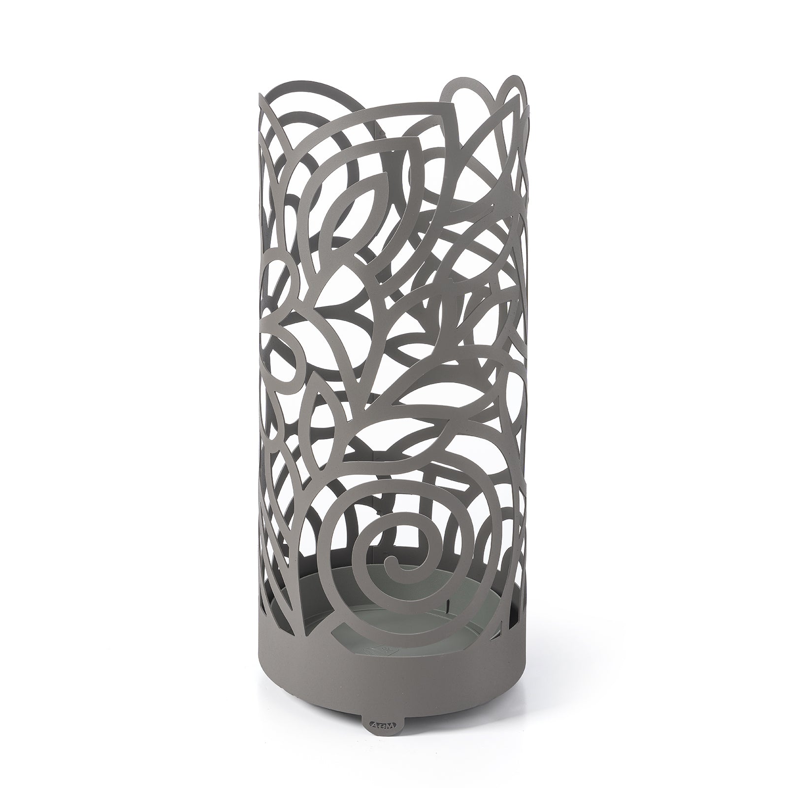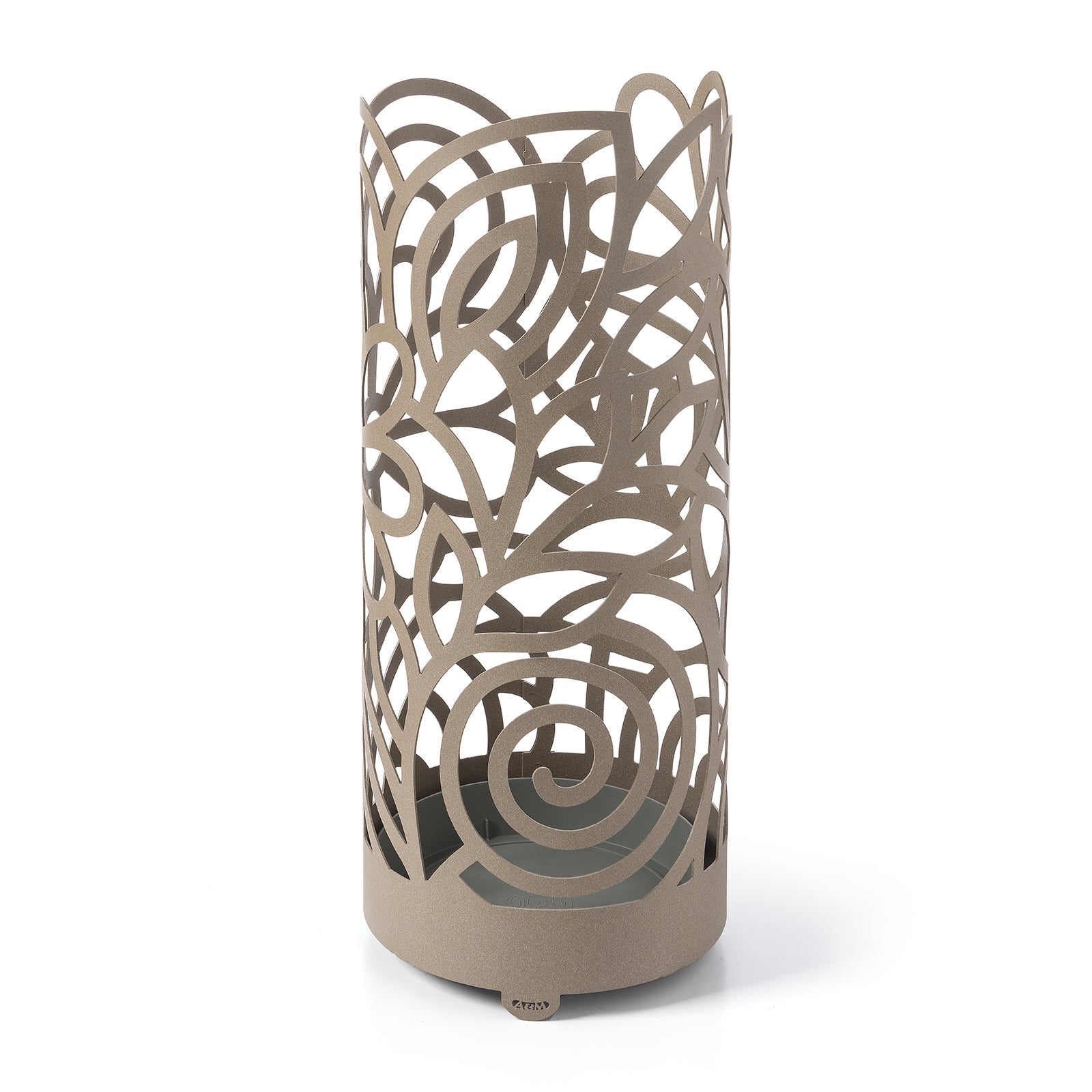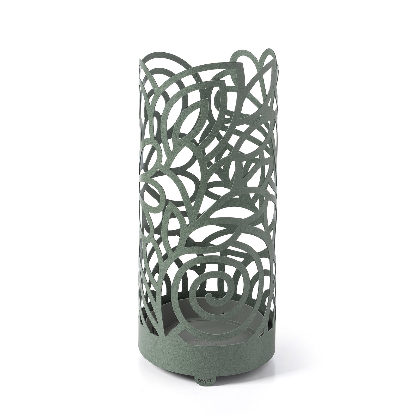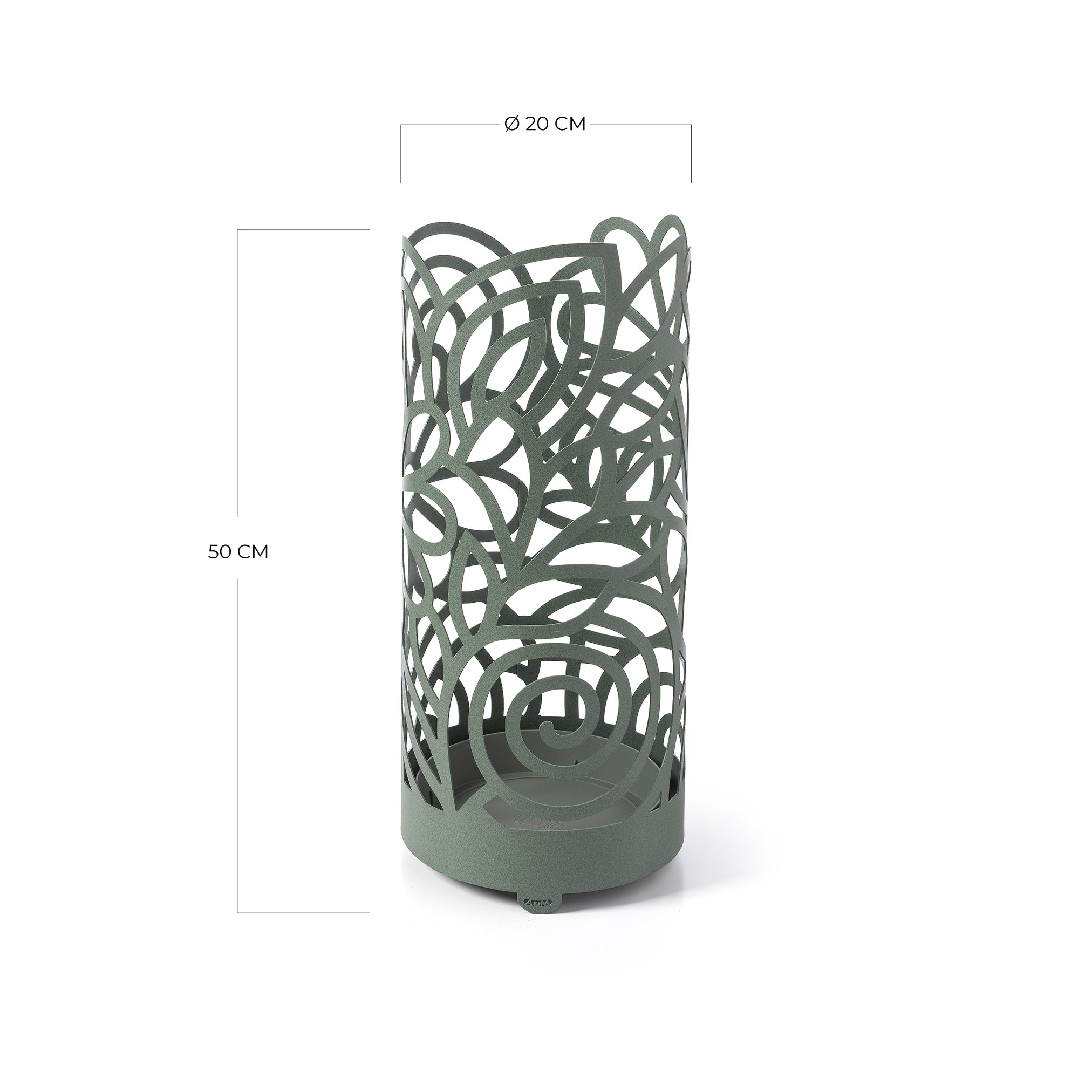 El paragüero de jardín ARTI e MESTIERI es un accesorio de decoración refinado y natural, diseñado para realzar entradas y espacios con un toque de elegancia inspirado en el mundo vegetal. Su diseño perforado es una de sus características distintivas: un patrón de hojas, flores y espirales recorre toda la estructura, creando un juego de llenos y vacíos que aporta ligereza y movimiento al objeto.