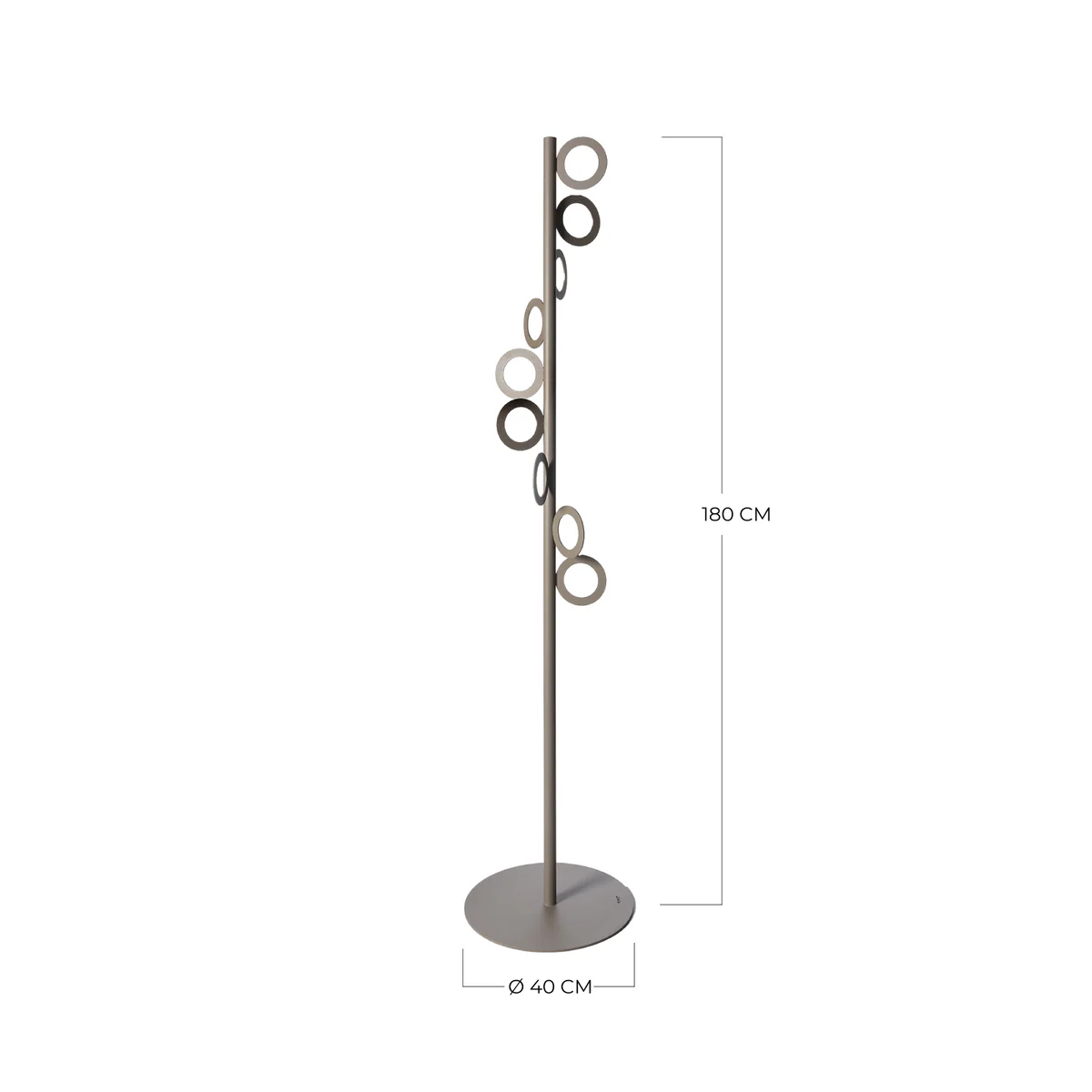 Caracterizado por un diseño esencial pero decidido, este complemento de decoración destaca por su estructura vertical en la que se alternan círculos dispuestos de forma escalonada, a la derecha y a la izquierda del tallo central.
