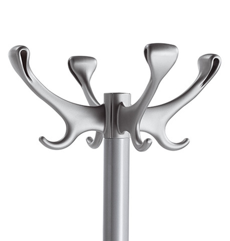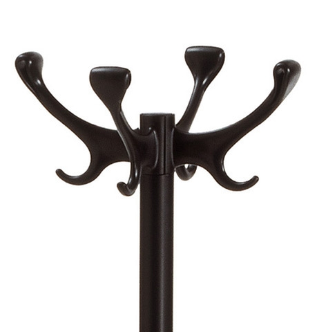 Perchero hecho de una base de acero embutido profundo con bordes redondeados para evitar daños en la superficie del piso, pintado con polvos