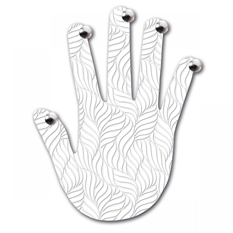 Percha en forma, decorada a mano con escritura en relieve, cinco pomos cromados.