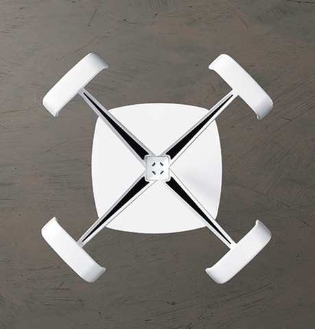 Cabezal de policarbonato blanco opaco, compuesto por cuatro elementos (brazos), cada uno equipado con dos asientos (1 perilla y 1 gancho), para un total de ocho asientos, unidos con un sistema de enclavamiento e integrados por una tapa. cuatro sectores