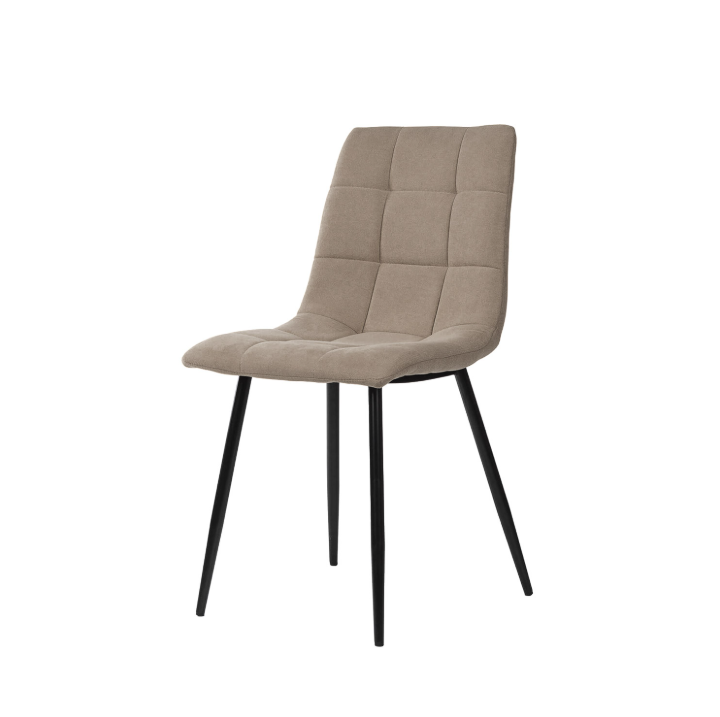 El tejido cuadrado de la tela, realizada 100% poliéster, no solo añade un toque de refinamiento, sino que también crea un elegante contraste con las suaves formas de la silla.