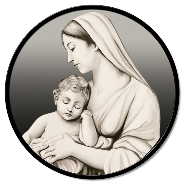 Panel redondo de fibra de madera recubierto de lona de puro algodón estampado en alta definición y con estructura de metal lacado mate.