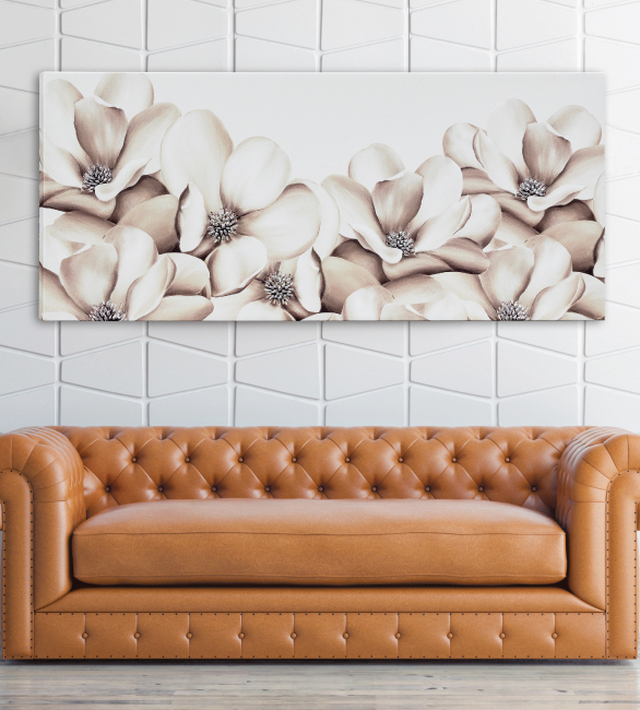 Lienzo sobre lienzo, decorado a mano con detalles en pan de plata sobre resina en relieve.