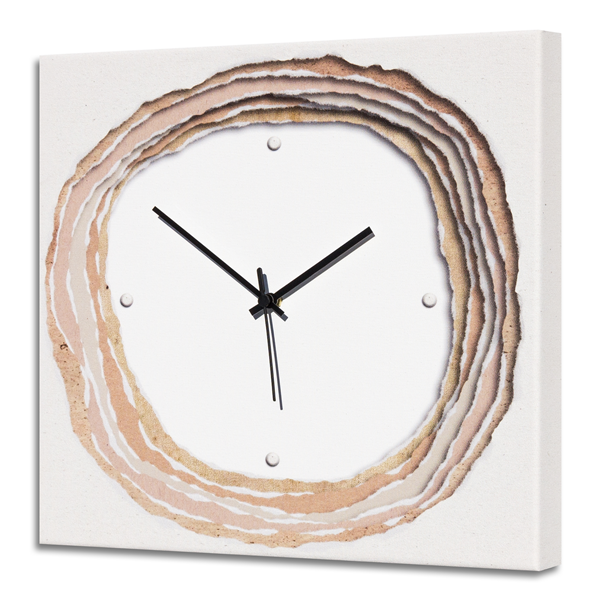 Reloj con marco de madera de abeto ensamblado a mano, cubierto con lona de algodón puro impresa en alta definición.