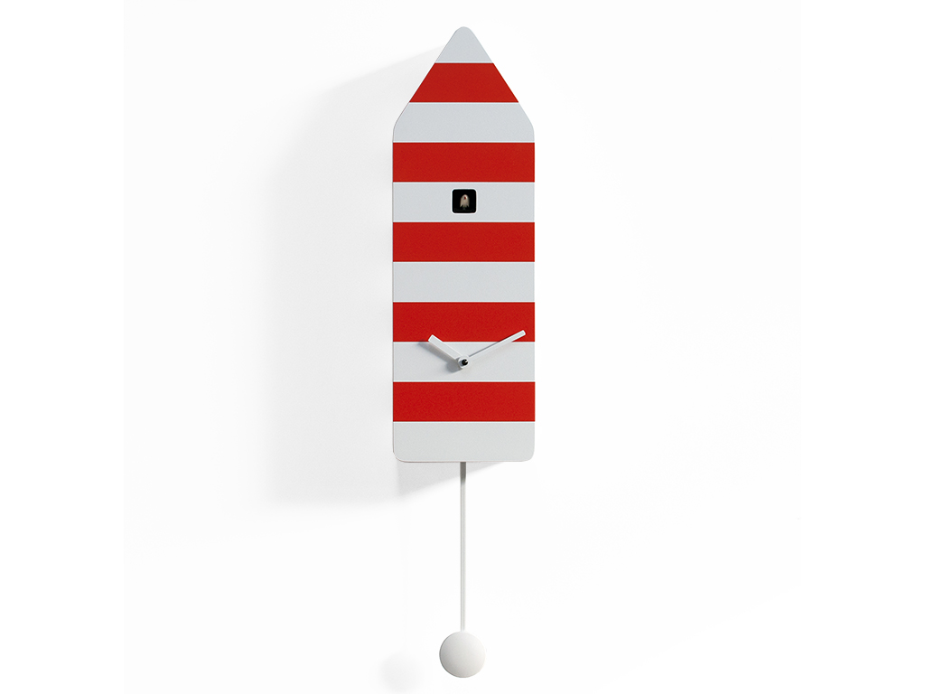 Capri es el cuco inspirado en uno de los destinos turísticos más buscados en Italia, la isla del Golfo de Nápoles, un lugar de vacaciones y descanso. El cuco con sombras brillantes y líneas limpias recuerda las cabañas de las instalaciones de baño pero con los colores típicos de las luces de señalización de las islas. Un objeto simple que contiene muchas emociones y recuerdos. Capri está incluido en la exposición permanente del Deutsches Uhrenmuseum, el histórico Museo Alemán del Reloj, importante para la vasta colección de relojes y cucos de todo el mundo. Capri está hecho de madera, equipado con un movimiento de cuarzo que funciona con baterías con un sensor que excluye automáticamente el timbre en ausencia de luz.