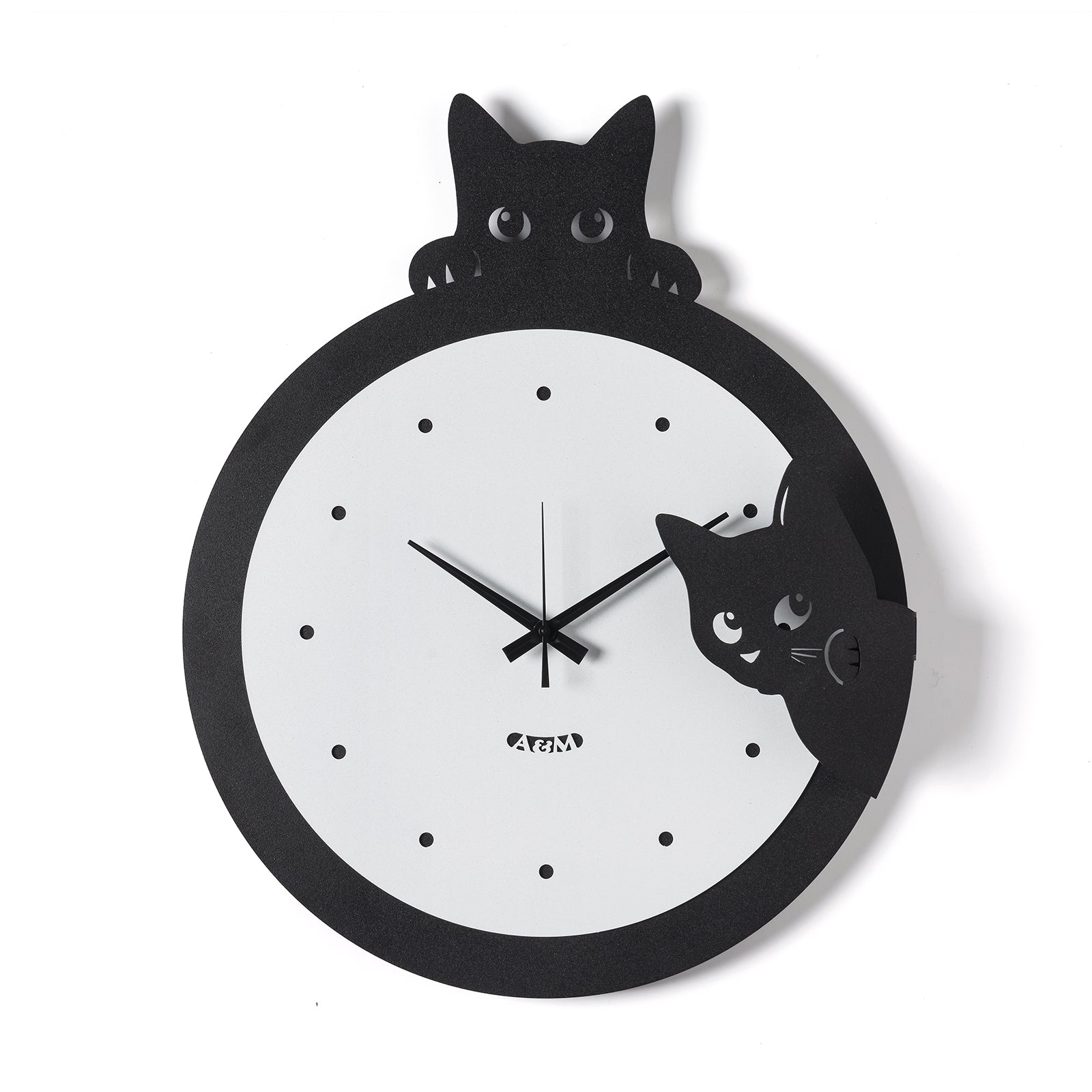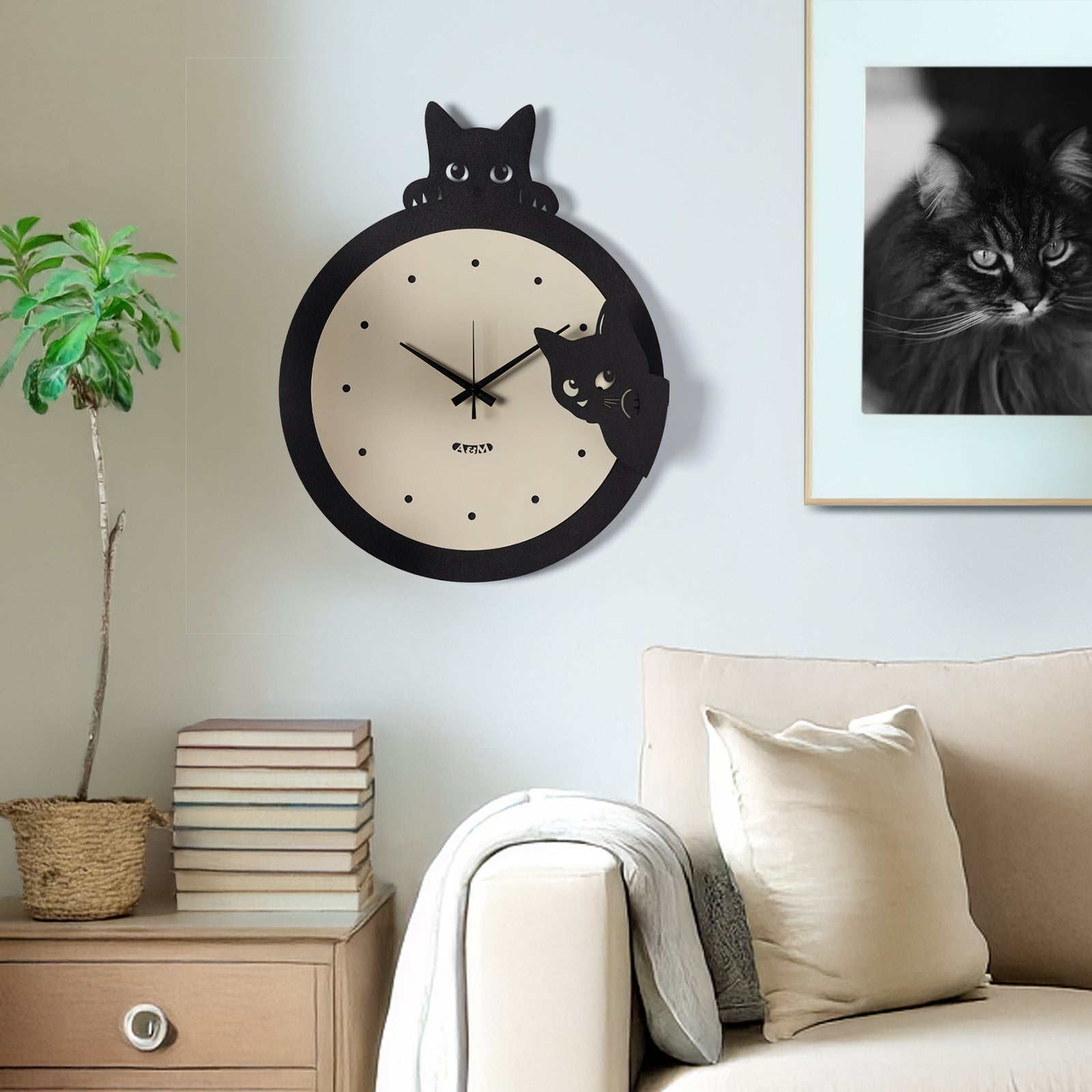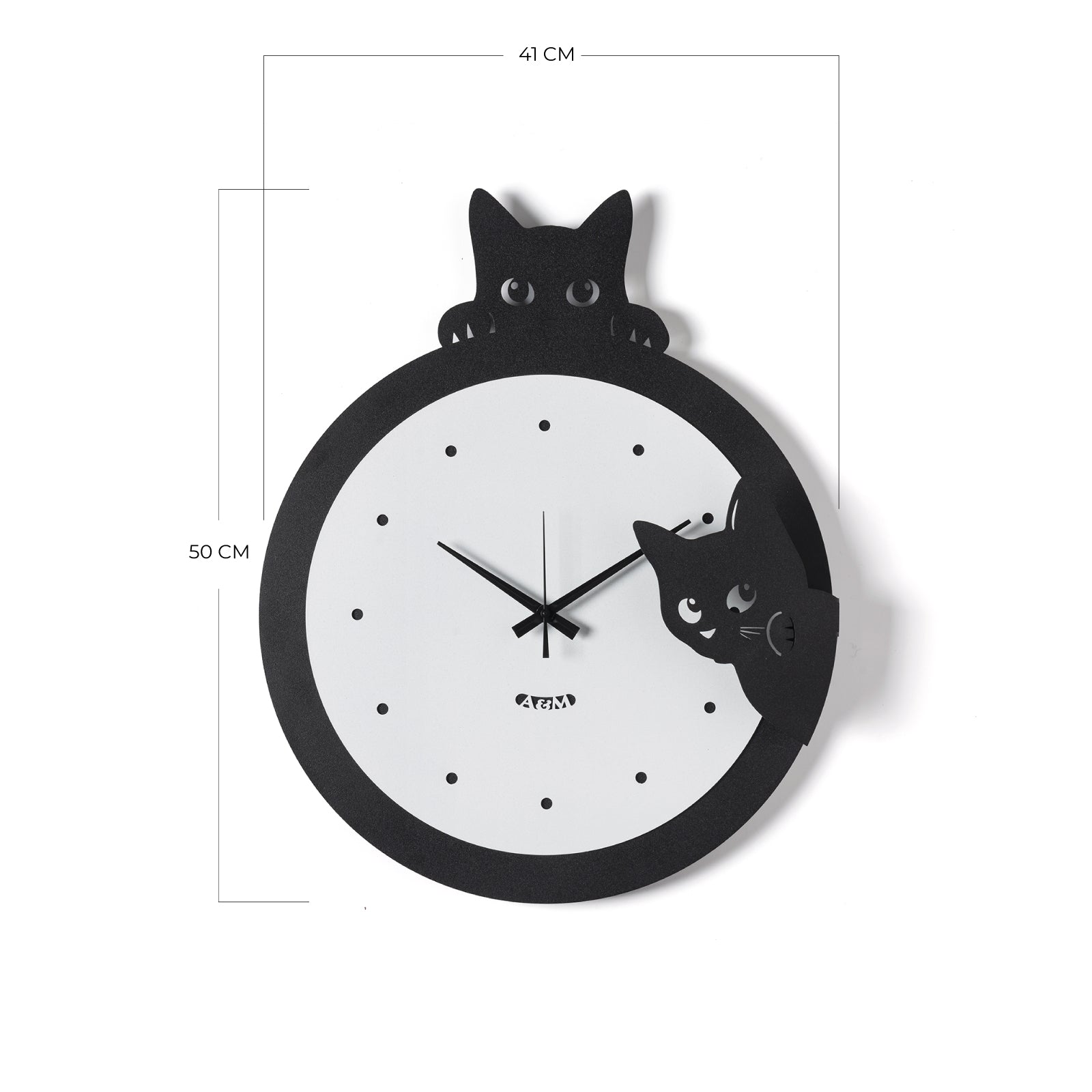 El rasgo más distintivo del reloj es, sin duda, la silueta del gato Silvestre, un elemento decorativo que le confiere un aire lúdico y tierno. La primera figura se extiende por la parte superior del reloj, con el gato apoyando sus patas delanteras en el borde en un gesto curioso y cariñoso. La segunda figura aparece en un lateral del marco: Silvestre emerge por un lateral e irrumpe en la esfera, como si intentara robarnos un instante.
