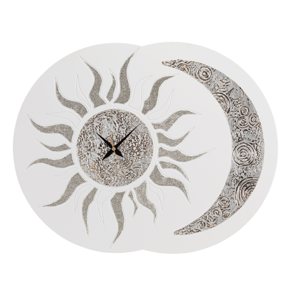 reloj cm 70x55 RELOJ SOBRE PANEL EN FORMA DE MARFIL LACADO DE MDF CON RELIEVE DECORACIÓN CON RESINA PLATA HOJA Y BRILLO