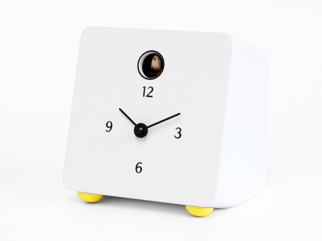 Mesa cuco inspirada en las formas de un famoso televisor de los años 60, retomando sus líneas limpias, suaves y redondeadas. Un objeto 'ya en casa', ya presente en los recuerdos de muchos o en la imaginación de aquellos que están fascinados por los años que han visto los primeros pasos en la luna, mitos nacidos aún hoy en día, como The Beatles y los Rolling Stones, y muchos eventos que Han marcado nuestros días. Fido está hecho de madera pintada. Es un objeto compacto que se puede colocar en un estante, un mueble o en el escritorio como un compañero confiable de las horas que pasa en el trabajo. Movimiento de batería de cuarzo.