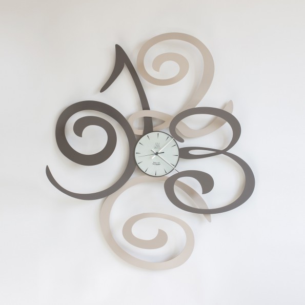 Fabricado íntegramente en metal pintado , el reloj presenta una armoniosa decoración floral que se extiende alrededor de la esfera central, creando un efecto escenográfico refinado y romántico. Cada pieza se produce en Italia y se termina con atención al detalle.
