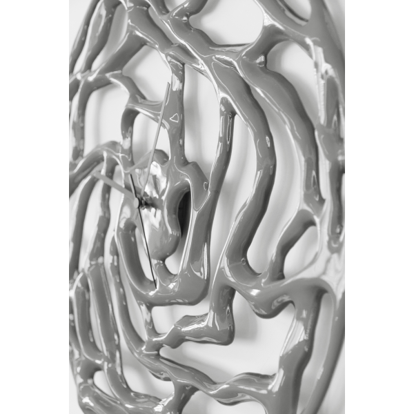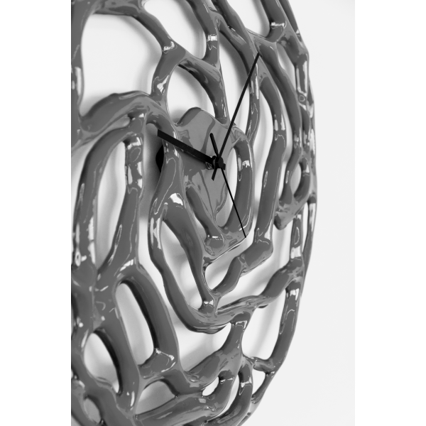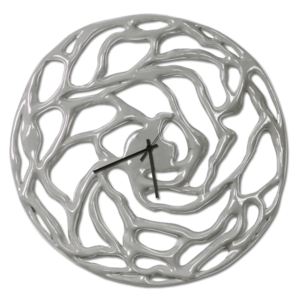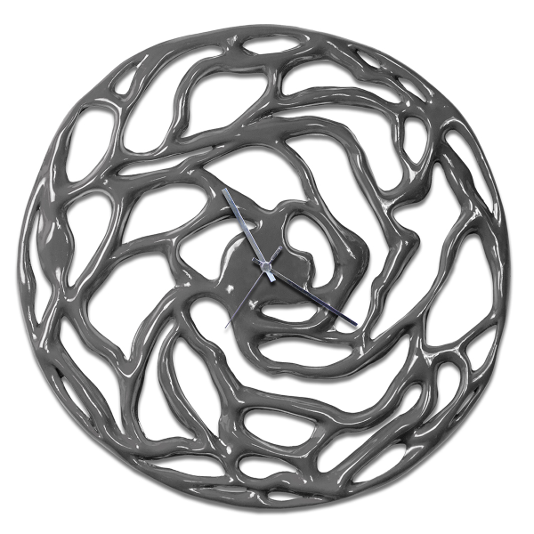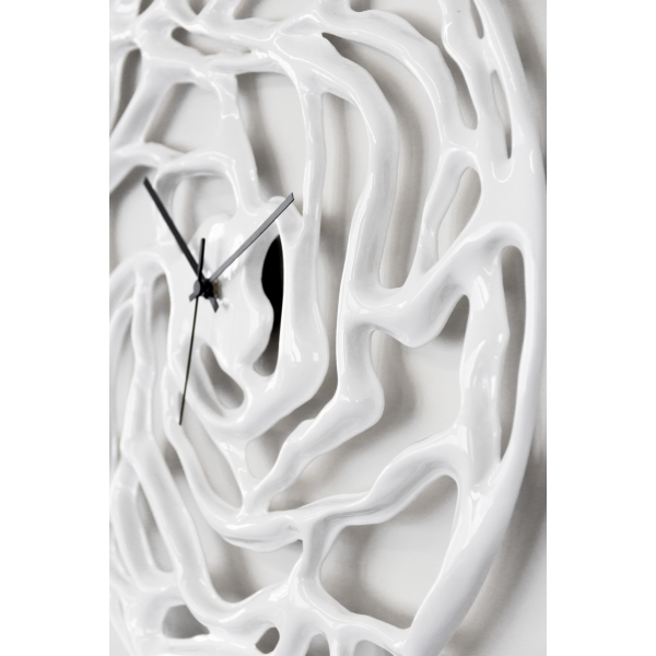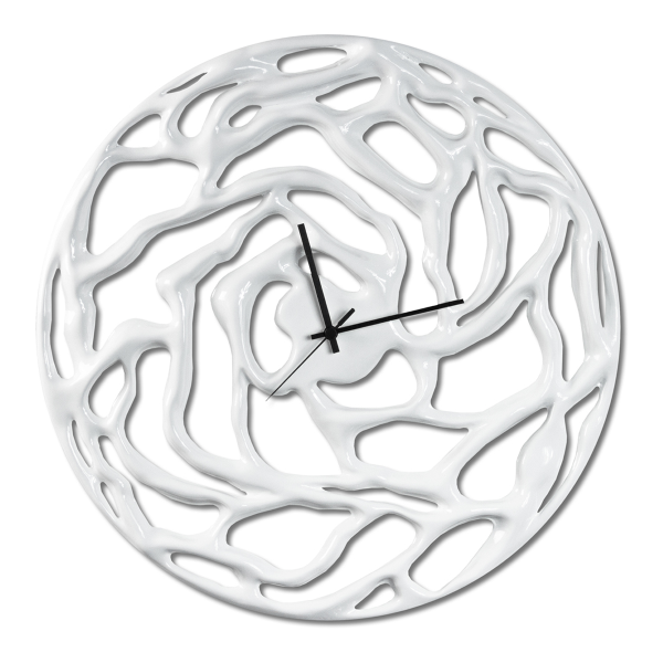 Reloj perforado en cerámica compuesta lacada, manecillas negras o cromadas, acabado pulido.