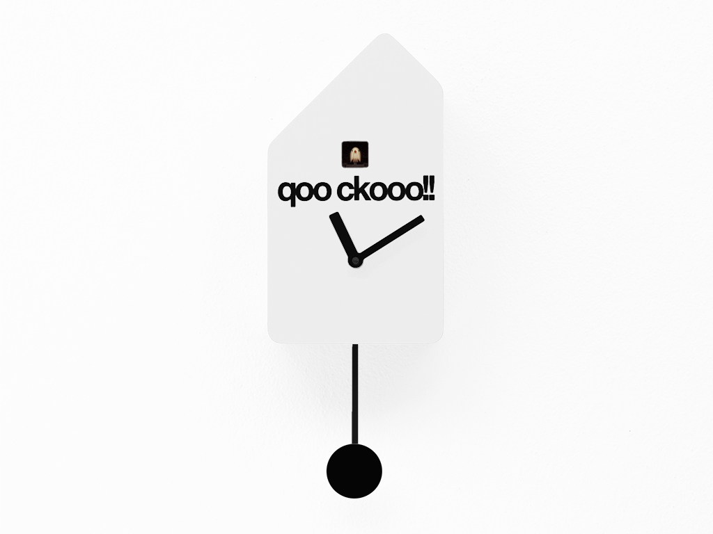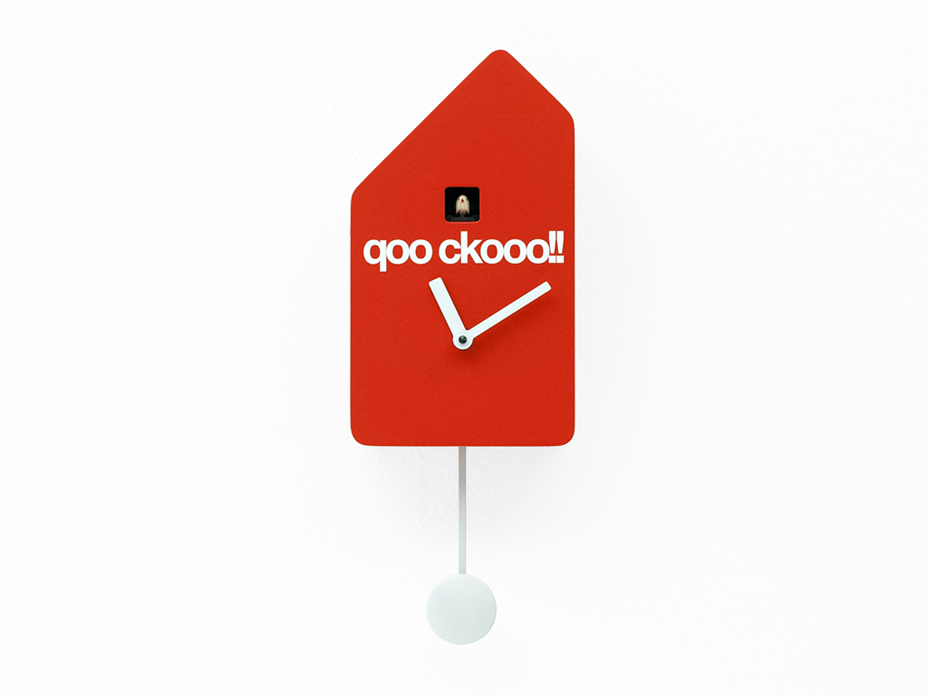 La clásica casa de cuco ha sido revisada en una clave contemporánea con trazos decisivos y líneas limpias que han eliminado cualquier exceso que da vida a un cuco de diseño con la particularidad del techo asimétrico. La única decoración es entre el pájaro y las manos y es la escritura 'qoo ckooo !!' eso hace que el "verso" a la canción de la pluma. Movimiento de batería de cuarzo. Un sensor sensible a la luz detiene automáticamente el timbre en ausencia de luz.