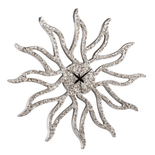 Reloj con forma, decorado a mano con pan de plata sobre textura.