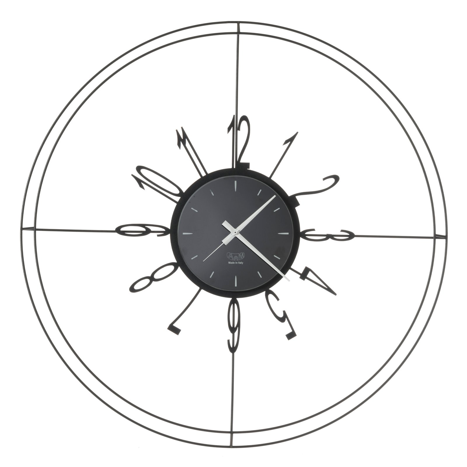 Reloj de pared compuesto por una esfera rodeada de números y líneas finas para unir todo. Disponible en dos colores, extremadamente versátil.